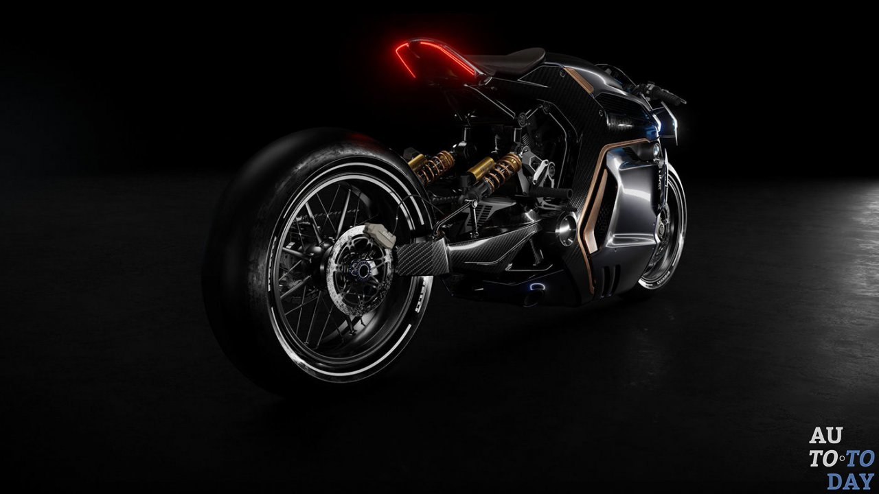 И фары, и задние фонари концептуального мотоцикла оснащены светодиодами, что позволяет дизайнеру придать им резкий и агрессивный вид. Другие ключевые элементы конструкции велосипеда включают крошечное лобовое стекло, пристегивающийся руль и мощные передние и задние шины.