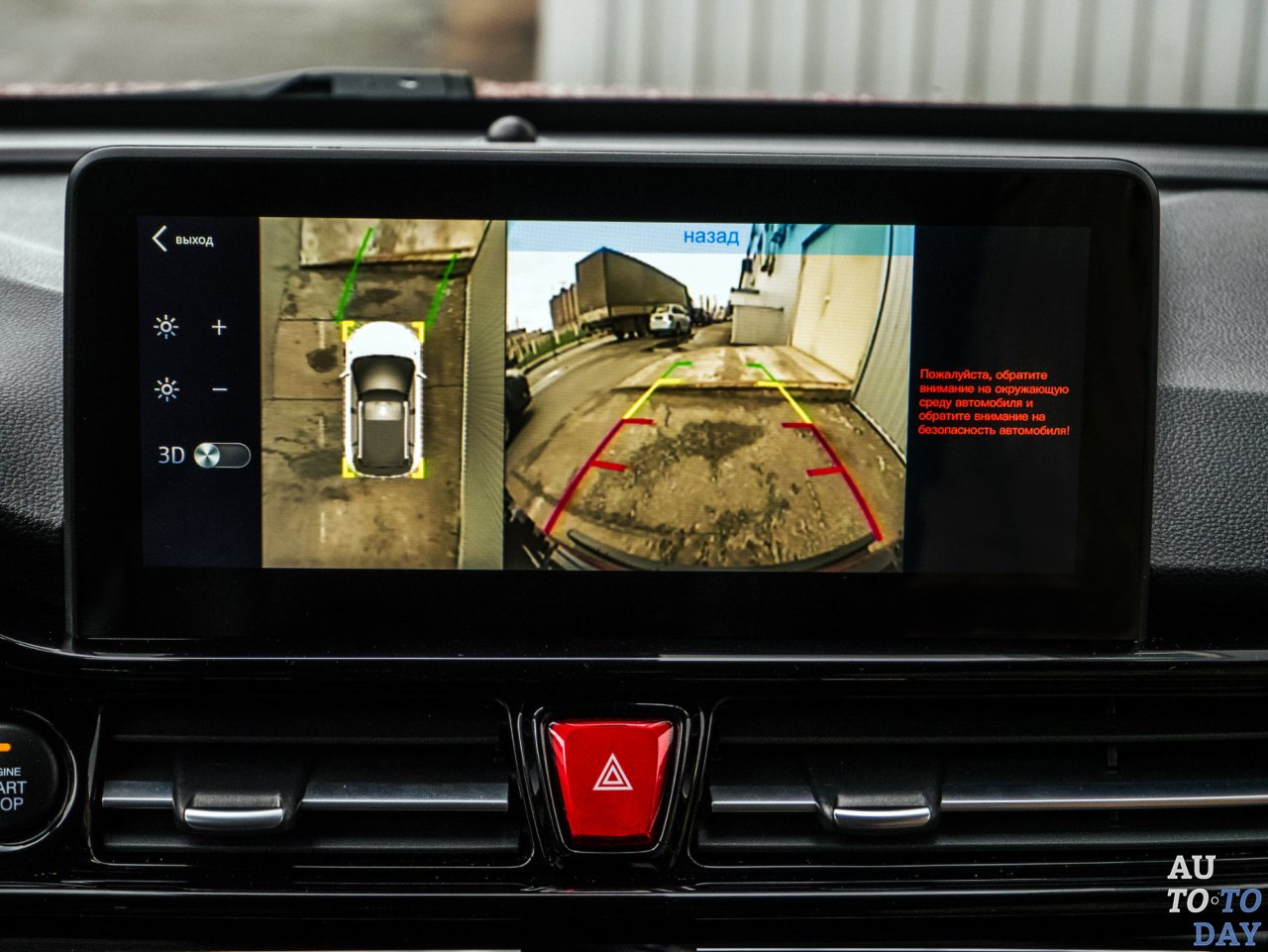 К мультимедийной системе с 10,25-дюймовым дисплеем и собственно экрану щитка приборов можно выразить замечание мелковатого шрифта и не всегда логичного и понятного перевода. Но вишенка на торте – это все еще появляющиеся в меню иероглифы. Хотя сама логика меню инфотеймента очень удобна и ясна – отдельные иконки, плиточки на панели с подразделами, долго в них не нужно «рыться». Картинка с четырех камер системы кругового мониторинга не отличается высокой четкостью, но о ситуации вокруг машины информирует.