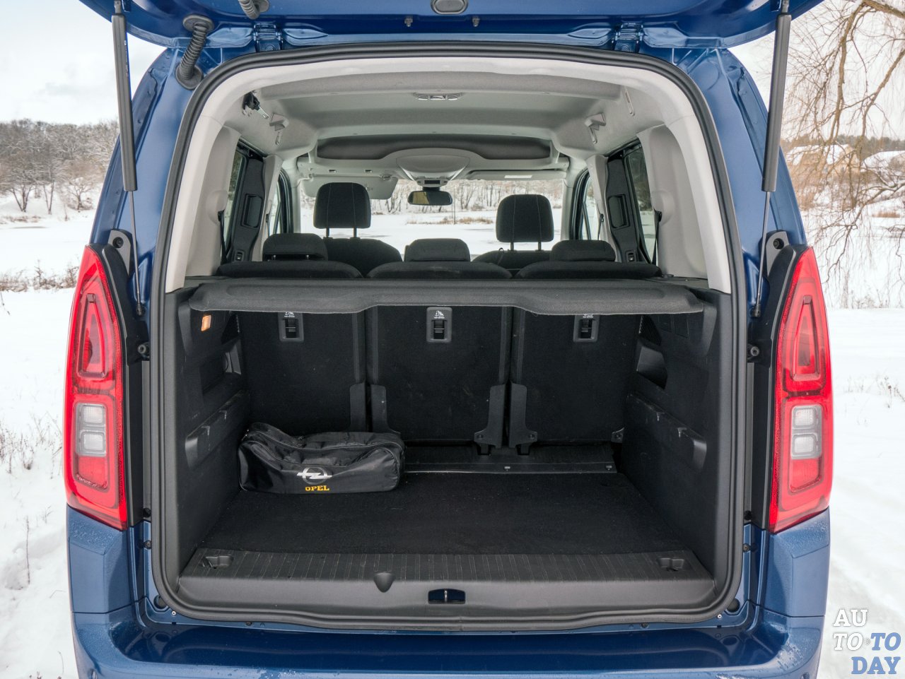Над головой водителя находится знакомая по многим коммерческим автомобилям полка для документов и прочих мелких вещей. Сидящие сзади не только оценят достаточное пространство для ног, но и мелкие фишки, помогающие не скучать в дальней дороге: столики с подстаканниками, шторки на окнах, полностью опускающиеся задние окна и пр. На тестовом автомобиле каждое из трех задних кресел можно сложить отдельно. Правда, полностью их демонтировать не получится. В таком ограничении трансформации и кроется главное отличие от коммерческих модификаций Opel Combo.