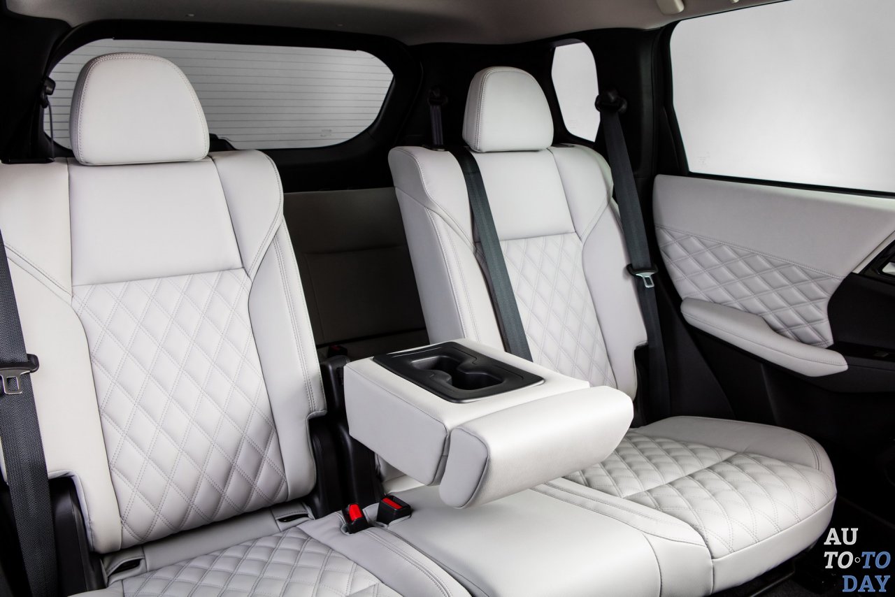 Outlander - единственный автомобиль в своем сегменте с трехрядным сиденьем в стандартной комплектации. Нам обещают, что внутренности нового Outlander - это «тихое и безмятежное пространство, демонстрирующее качество и удобство благодаря материалам высшего класса». Хотя это может быть просто маркетинговый ход, кажется, что в продаже есть несколько высококачественных поверхностей и конструктивных особенностей. Сиденья из натуральной кожи и алюминиевая отделка доступны в топовой модели SEL, в то время как нижние модели отделаны тканью или замшей.