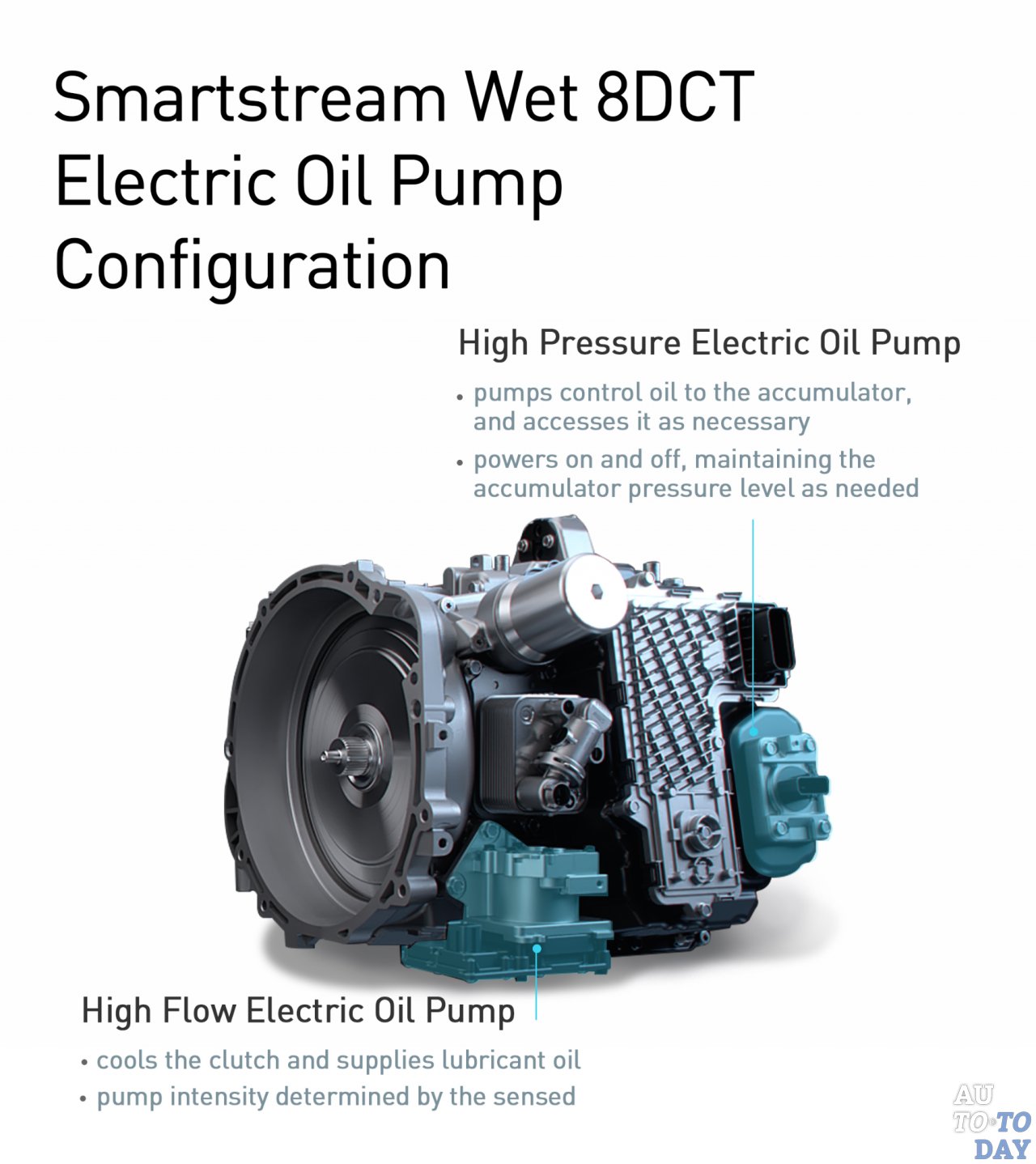 Система электрических насосов состоит из высокоскоростного электрического масляного насоса, который отвечает за смазку шестерней и охлаждение сцепления, и электрического масляного насоса высокого давления, который подает масло в аккумулятор и поддерживает давление, необходимое для управления переключением передач. Вместе они гарантируют, что DCT мокрого типа будет работать с минимальными потерями мощности двигателя, а положительным побочным эффектом от уменьшения потерь будет дополнительная экономия топлива. Эта новая улучшенная насосная система увеличивает количество возможных применений для N DCT мокрого типа, что делает ее оптимальной для использования в автомобилях с высоким крутящим моментом. Двойное преимущество: эта система предоставляет возможность увеличения максимального допустимого крутящего момента, вследствие чего управлять автомобилем становится более увлекательно из-за повышения эффективности передачи мощности и ускорения.