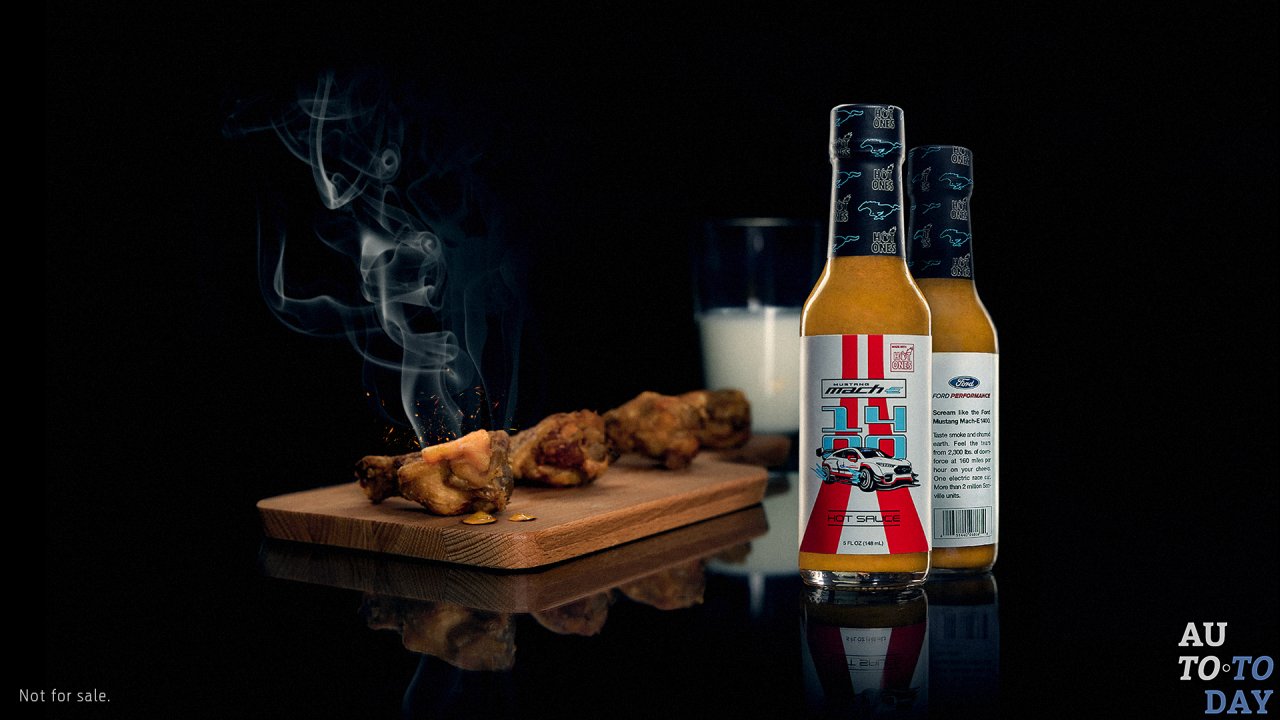 В партнерстве с Шоном Эвансом из шоу Hot Ones на YouTube, Ford Performance стремился раскрыть сущность Mustang Mach-E 1400. Идея заключалась в том, чтобы «превратить ощущение езды на Mustang Mach-E 1400 в острый соус с нотками дыма, обугленной земли и обилием безумно острого перца - для острого соуса, который заставит вас кричать, как Mach-E 1400».