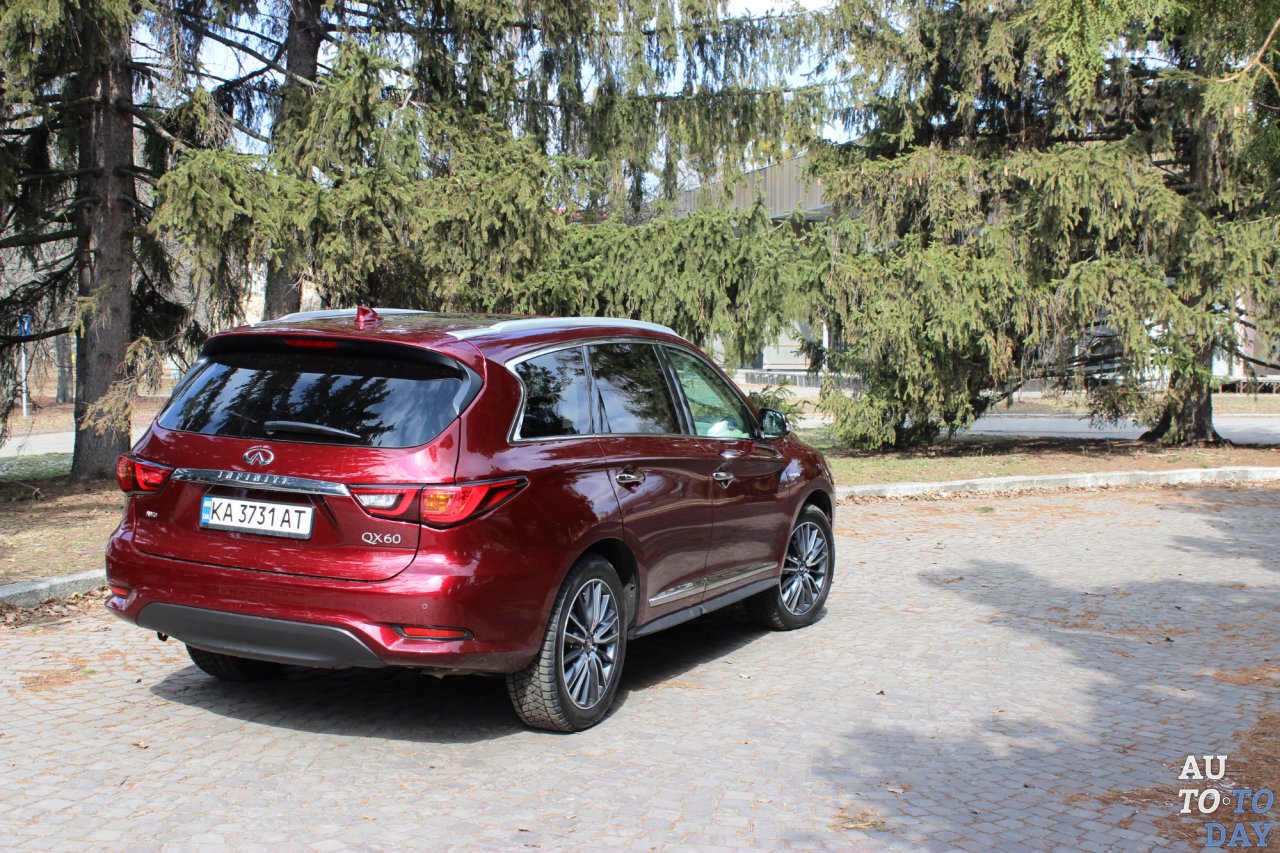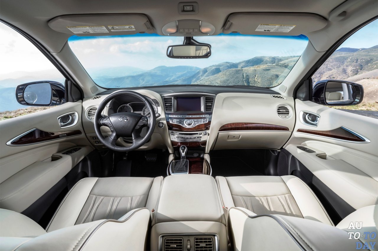 Ответ на этот вопрос будет очень простым и лаконичным – почти никак. Наличие гибридных технологий выдает только шильдик на крышке багажника и накладки на порогах. В остальном же – это хорошо знакомый QX60, который мы тестировали более трех лет назад. Интересно, что в сравнении с бензиновой версией гибрид имеет на восемь сантиметров большую колею. Связано это с установкой другого двигателя. Несколько возросший вес кроссовера повлиял и на дорожный просвет. Если у «бензинки» этот параметр составляет 187 мм, а у гибрида – почти на сантиметр меньше.