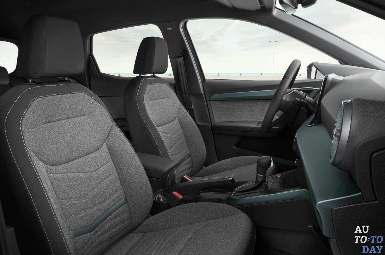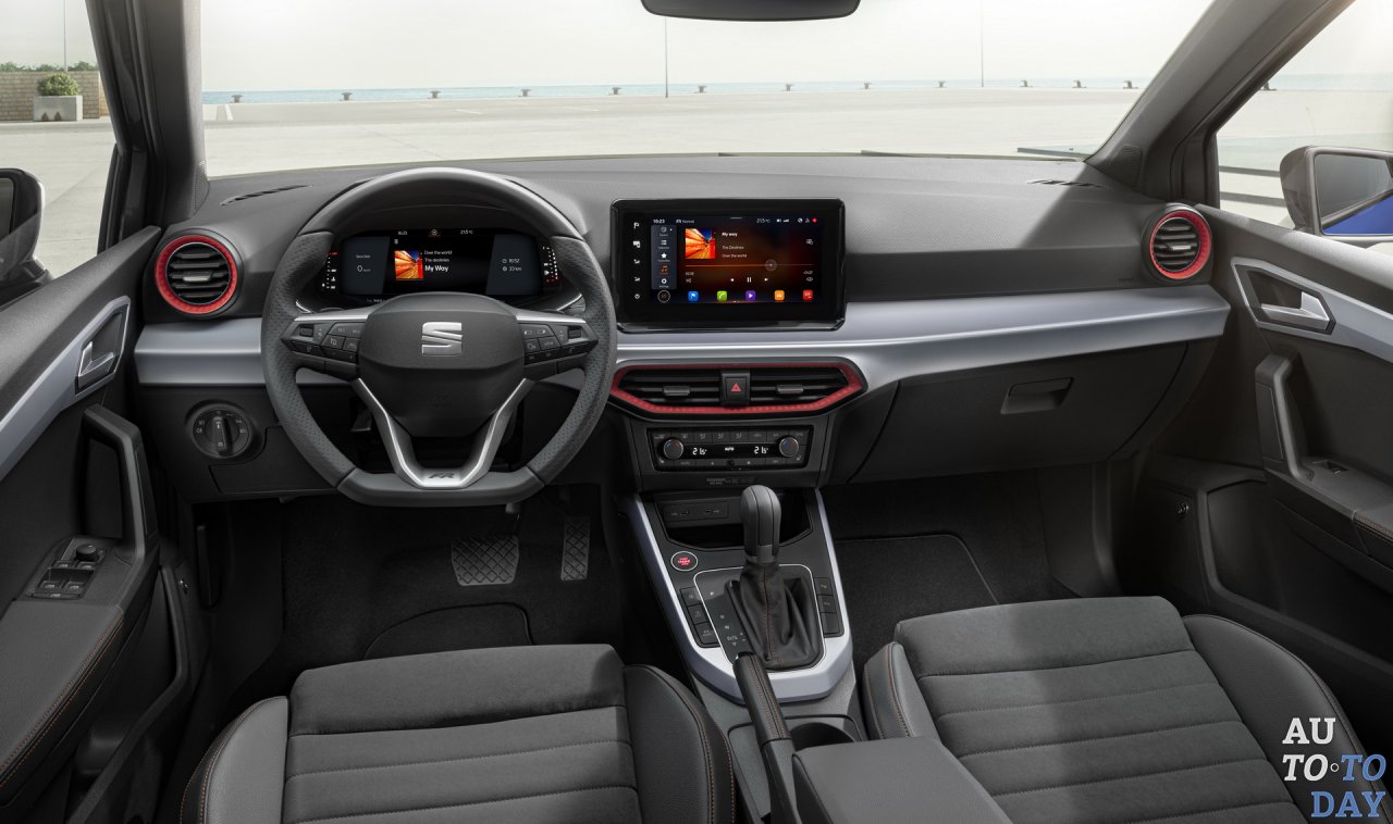 Внутри новая Arona имеет переработанную приборную панель с двухслойной формой и новой центральной консолью. Информационно-развлекательная система с 8,25-дюймовым дисплеем в стандартной комплектации и 9,2-дюймовым экраном, предлагаемым от SE Technology и выше, теперь имеет плавающий дизайн и расположена над новыми центральными вентиляционными отверстиями и рядом с 10,25-дюймовым цифровым кластером, который ограничен Модели FR Sport и Xperience Lux.