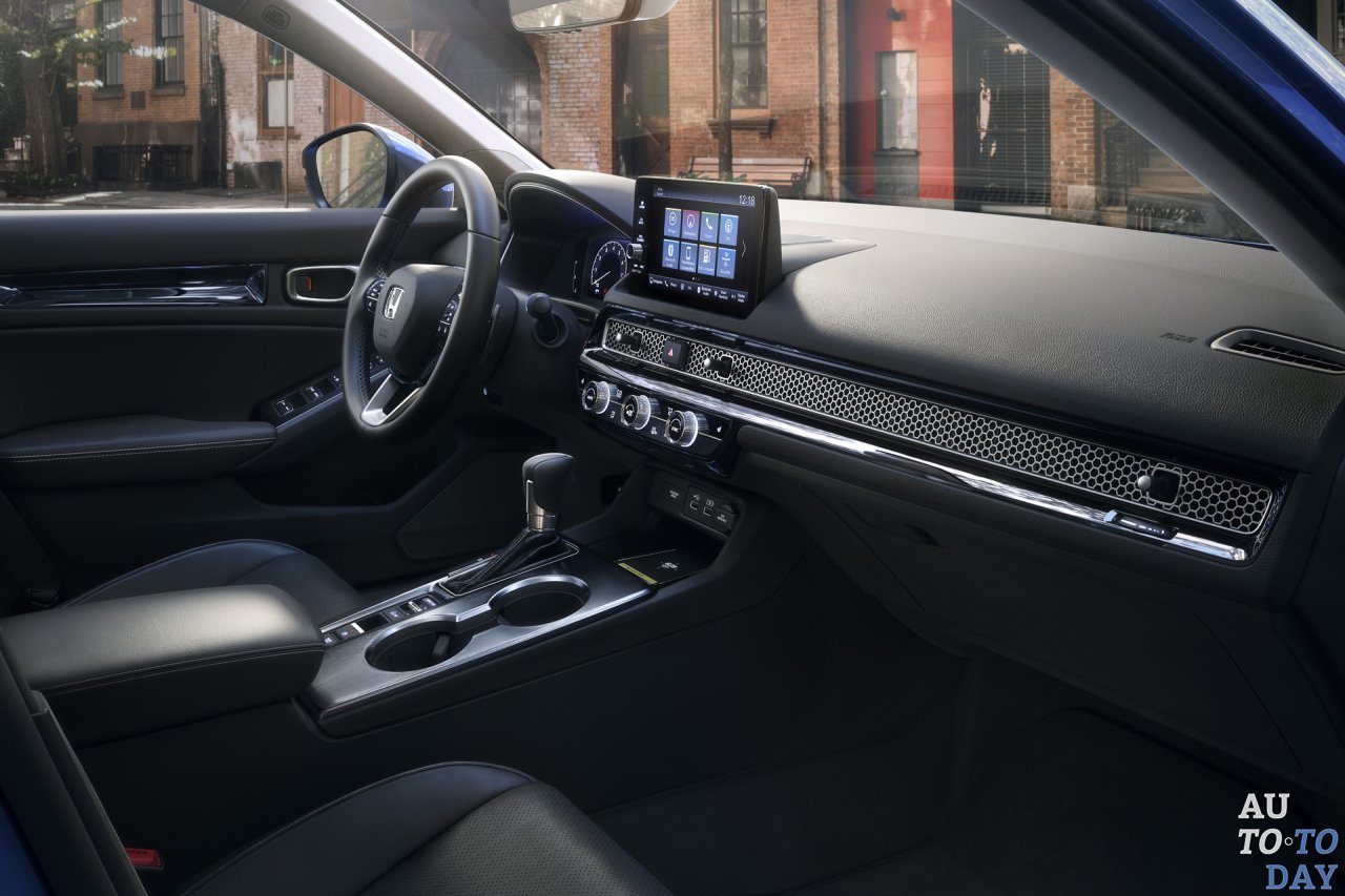 В отличие от других современных автомобилей, у которых все функции управляются центральным сенсорным экраном, Civic имеет физические элементы управления кондиционером, а также ручку регулировки громкости звуковой системы, которая, впервые в Civic, может быть с 12 динамиками. Honda также добавила 0,8-дюймовую подставку для пальцев в нижней части сенсорного экрана, чтобы упростить его использование.