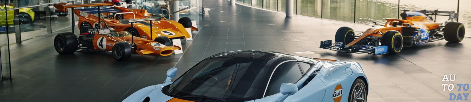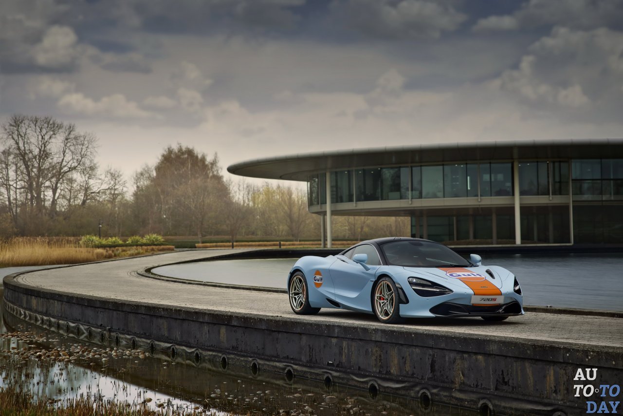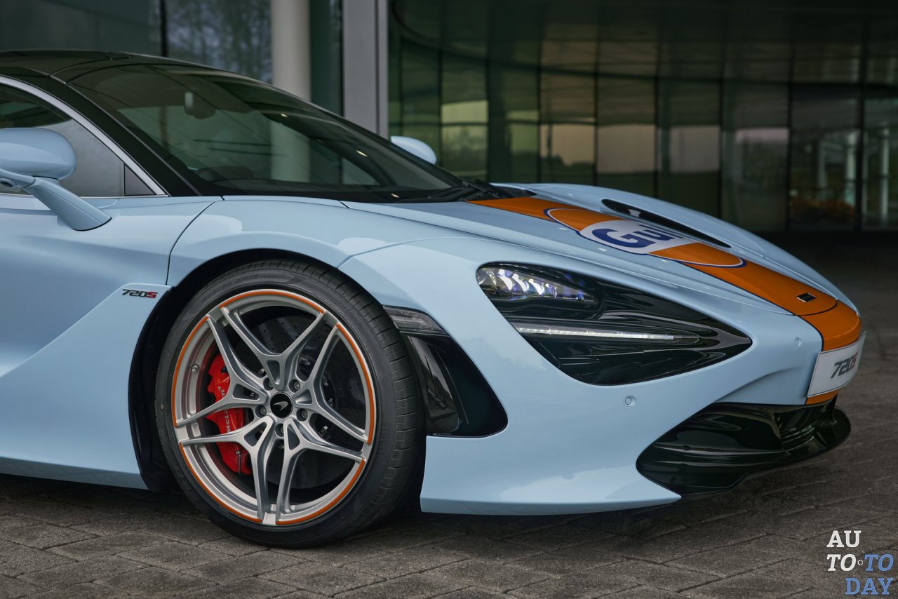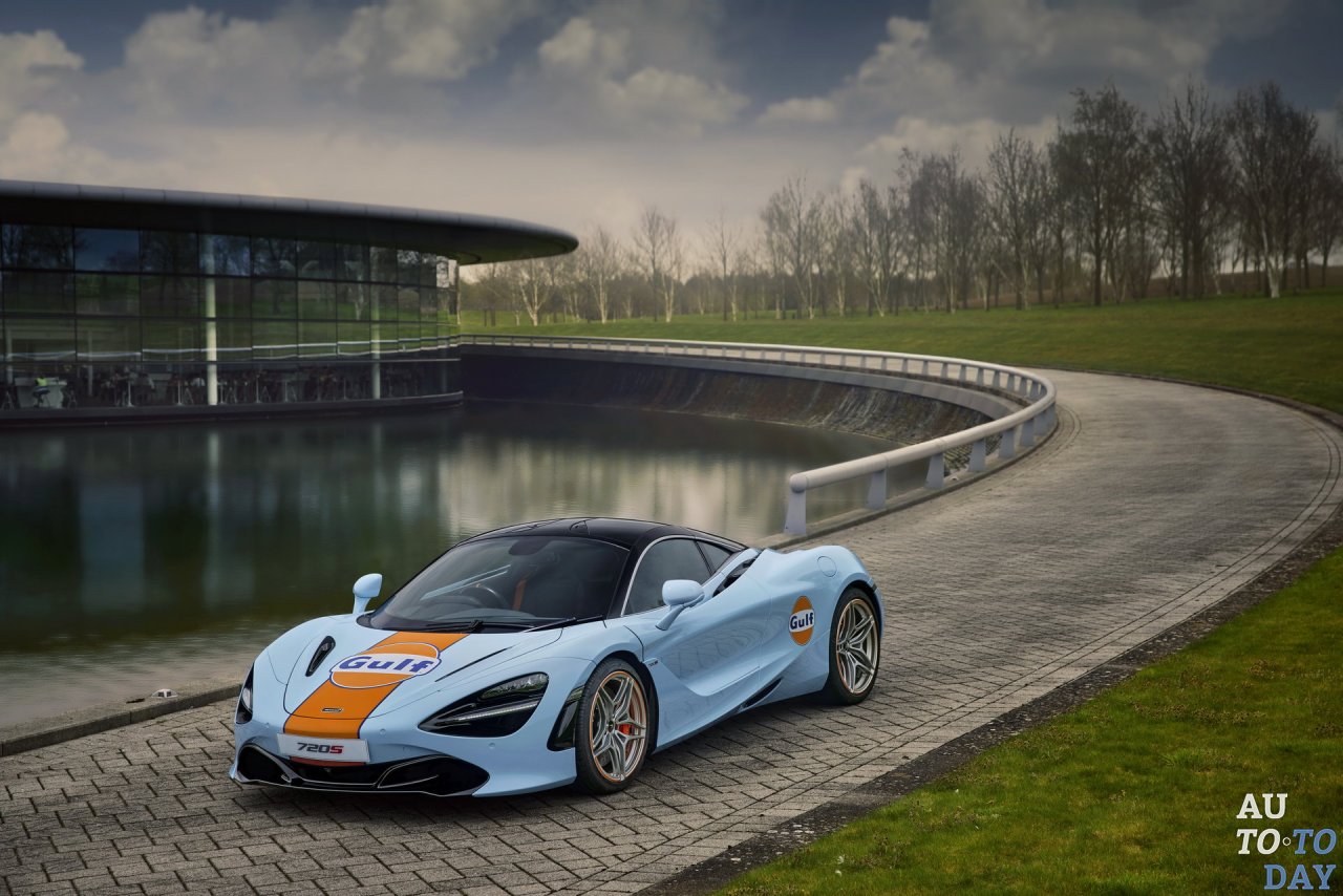 Этот проект был разработан McLaren Special Operations (MSO), и его мастерам потребовалось 20 дней, чтобы нарисовать его вручную. Помимо синих и оранжевых оттенков, используемых на внешних панелях кузова, британский суперкар отличается оранжевыми тормозными суппортами и соответствующим интерьером с логотипами Gulf, нанесенными на пороги и вышитыми на подголовниках.