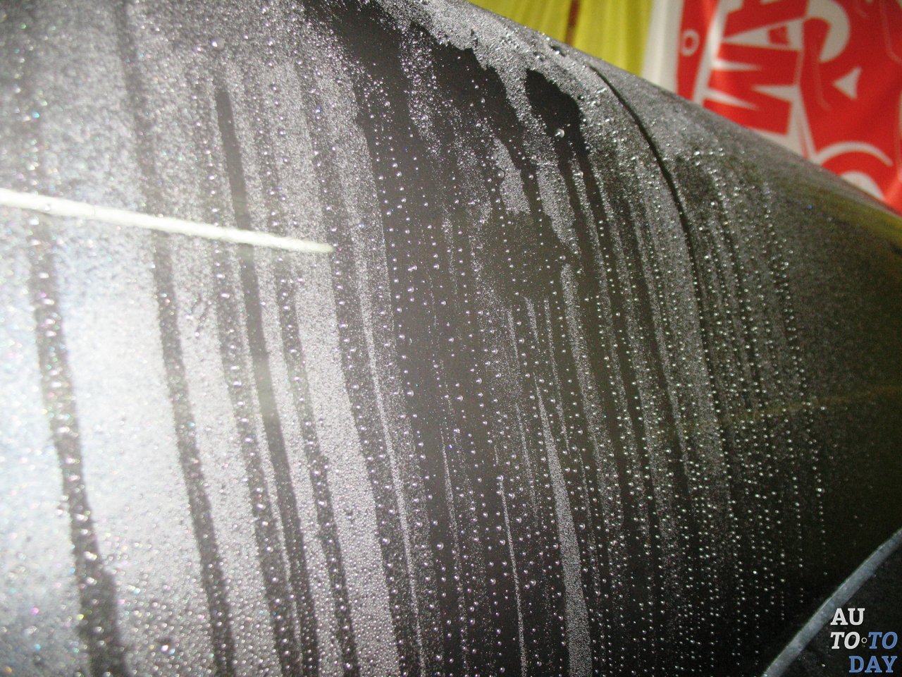 Крем при нанесении благодаря своей консистенции расходуется экономично. Наши операции с 10-летним черным кроссовером показали, что одной баночки препарата хватит на полторы машины. После обработки полиролью лак утратил разводы и «солнечные» концентрические круги. Содержание в составе воска корнаубы создает на кузове тонкий защитный слой, его наличие подтверждают быстро скатывающиеся даже с горизонтальных поверхностей капли воды. А вот малоабразивные элементы придали даже потертому лаку блеск.