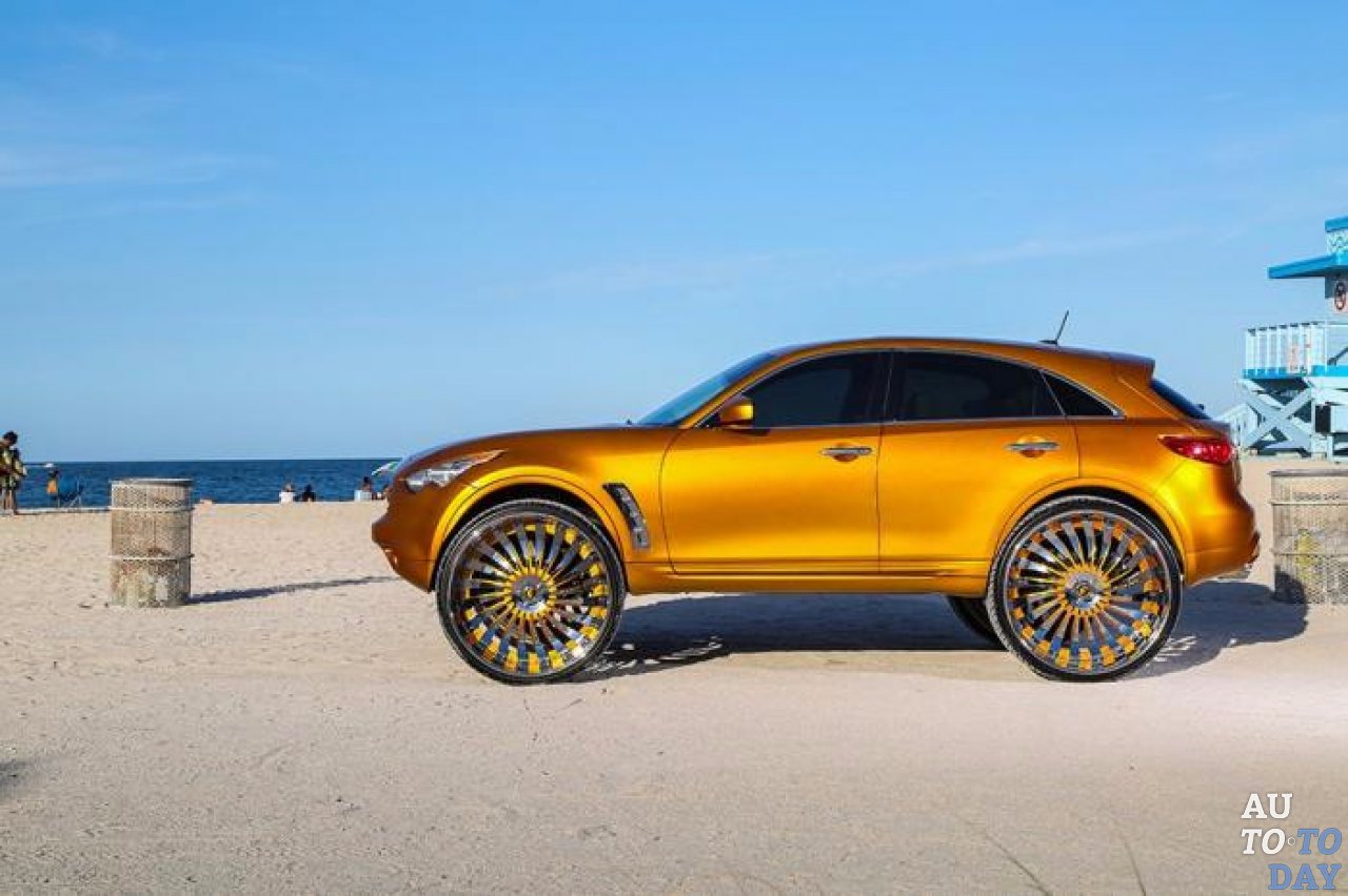 Помимо блестящих колес этот кроссовер получил золотую обертку пленкой, при этом логотип на передней решетке также был окрашен в аналогичный цвет. Неудивительно, что хромированные акценты лишь добавили автомобилю безвкусицы еще больше. Компания Forgiato отказалась прокомментировать, как сказалась установка таких больших колес на управление автомобилем, однако, не вызывает сомнений, что 32-дюймовые диски оказали значительное влияние на маневренность машины.