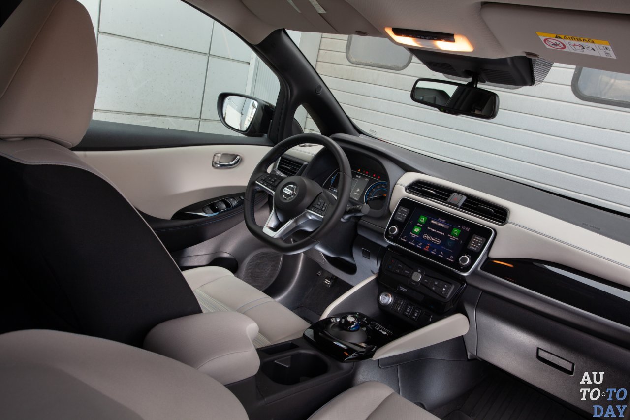 В салоне «Ниссана» много хорошо знакомых элементов: рулевое колесо, кнопки, всевозможные рычажки. Но и нового для украинского протребителя предостаточно. Так, инфотеймент поддерживает Apple CarPlay, щиток приборов на половину цифровой. Особо стоит отменить необычный рычаг управления трансмиссией, который похож больше на джойстик игровой консоли. В нем имеется четыре режима – R, D, N и В. Последний отвечает за усиленный режим рекуперации.