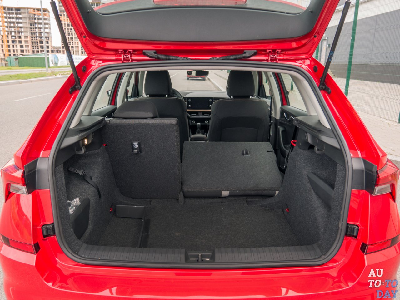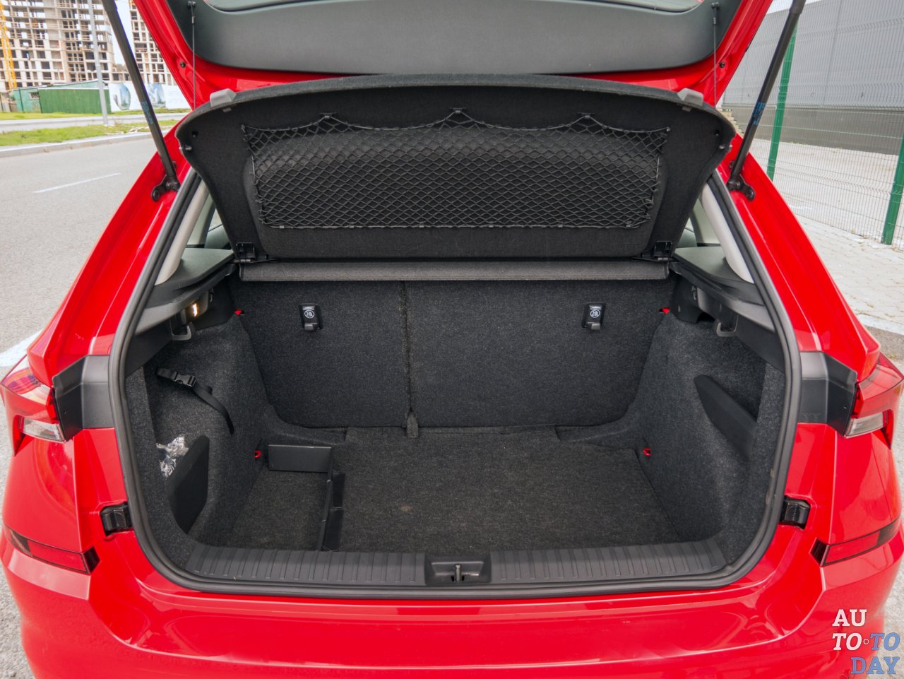 Объем багажного отсека по умолчанию составляет 400 литров. Если сложить спинки второго ряда, то получим уже 1395 свободных литров. Чехи еще в том молодцы, что не спешат отказываться от запасного колеса – в украинских реалиях это пока преимущество, нежели недостаток. «Шкода» не была бы собой, если бы позабыла о множестве практичных фишек – зонтике в задней двери, сетке и разделительных бортиках в багажнике, скребке с мерной линейкой для глубины протектора под лючком бензобака, резиновой лейкой для залива «омывайки».