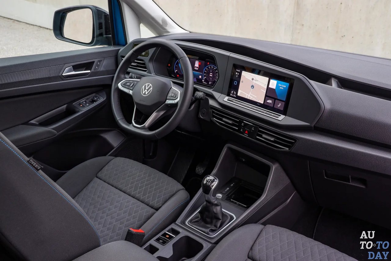 В салоне Volkswagen Caddy произошло множество обновлений. Самое заметное – это новое торпедо и рулевое колесо. Передняя панель архитектурно полностью повторяет восьмое поколение Golf. Об удобстве эксплуатации сенсорных панелей мы уже рассказывали в тесте хэтчбека. Но если кратко, то ожидание пугало больше, чем сама эксплуатация. Единственное неудобство в случае с «Кадди» заключается в том, что в машине нет климат-контроля, а присутствует только кондиционер. Потому температуру обдува нужно вручную регулировать ползунком на сенсорном экране.