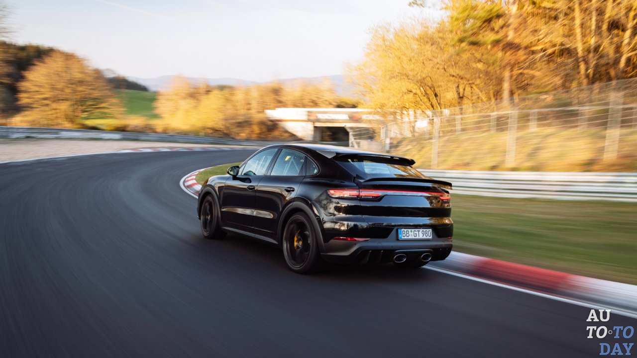 7:38,925 минуты. Для защиты водителя Cayenne-рекордсмен был оснащен гоночным сиденьем и каркасом безопасности. Использованные во время рекордного заезда 22-дюймовые высокоскоростные шины Pirelli P Zero Cora были разработаны специально для новой модели Cayenne Turbo GT Coupe и входят в