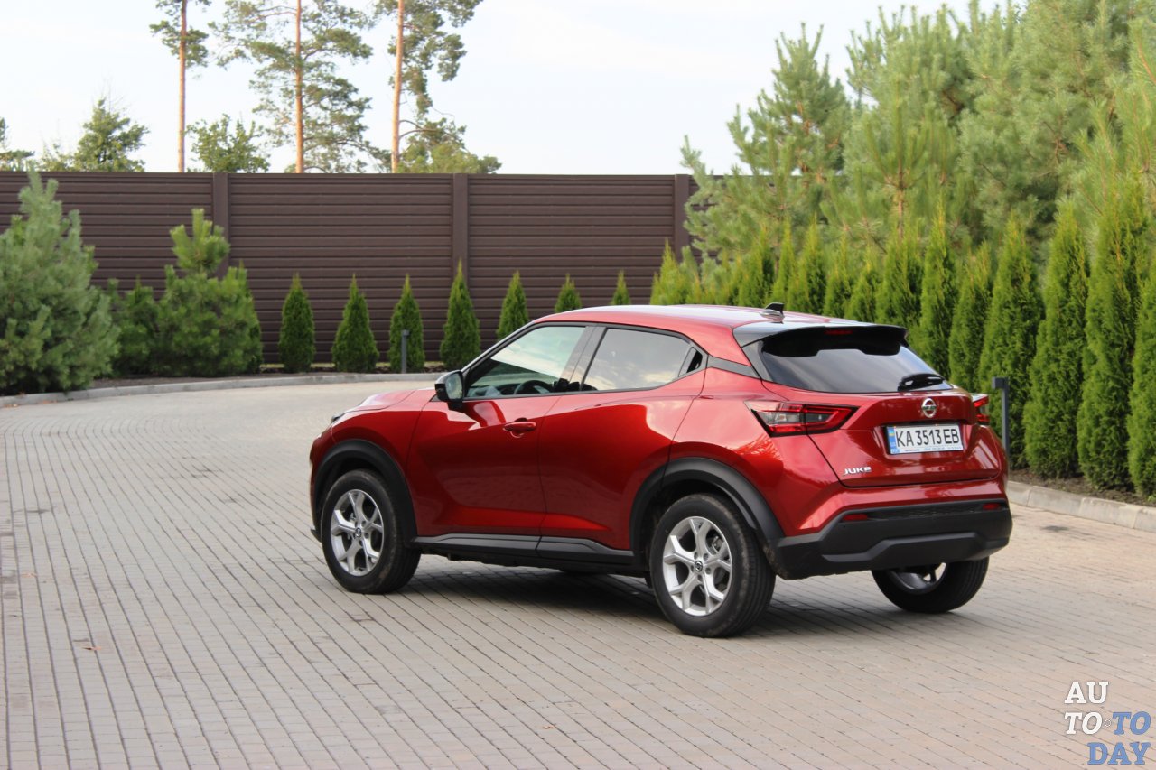 Кроссовер второго поколения построили на модульной платформе CMF-B. Конструктивно она во многом схожа с машиной первой геренации – на передней оси работают стойки McPherson, сзади прописалась полузависимая подвеска. Длина Nissan Juke в сравнении с предшественником увеличилась с 4135 до 4210 мм, ширина — с 1765 до 1800 мм, а высота — с 1565 до 1595 мм. Одновременно с этим благодаря широкому применению современных материалов (преимущественно высокопрочных сталей) вес машины снизился на несколько десятков килограмм.