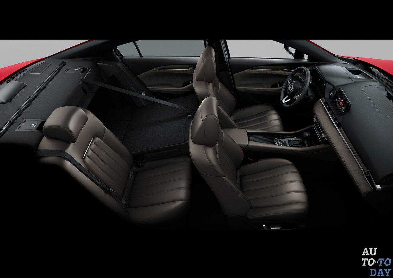 Сложить спинку дивана можно только с зоны грузового отсека. Переднее кресло получило двухпозиционную память. Высокий порожек - это минус, но скрытые завесы - это плюс. Японские дизайнеры решили почти полностью перекроить торпедо «Шестерки». Самое заметное изменение – это сузившиеся дефлекторы обдува и появившаяся под ними широкая полоса замши, которая находит свое продолжение на дверных картах.