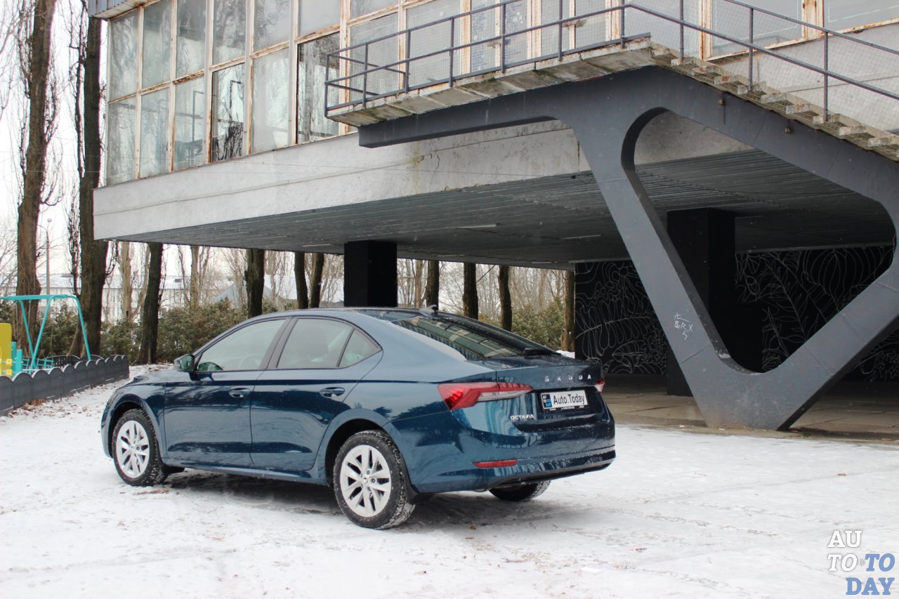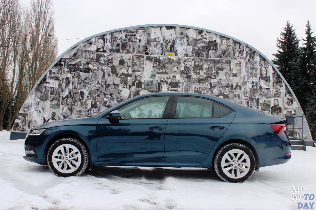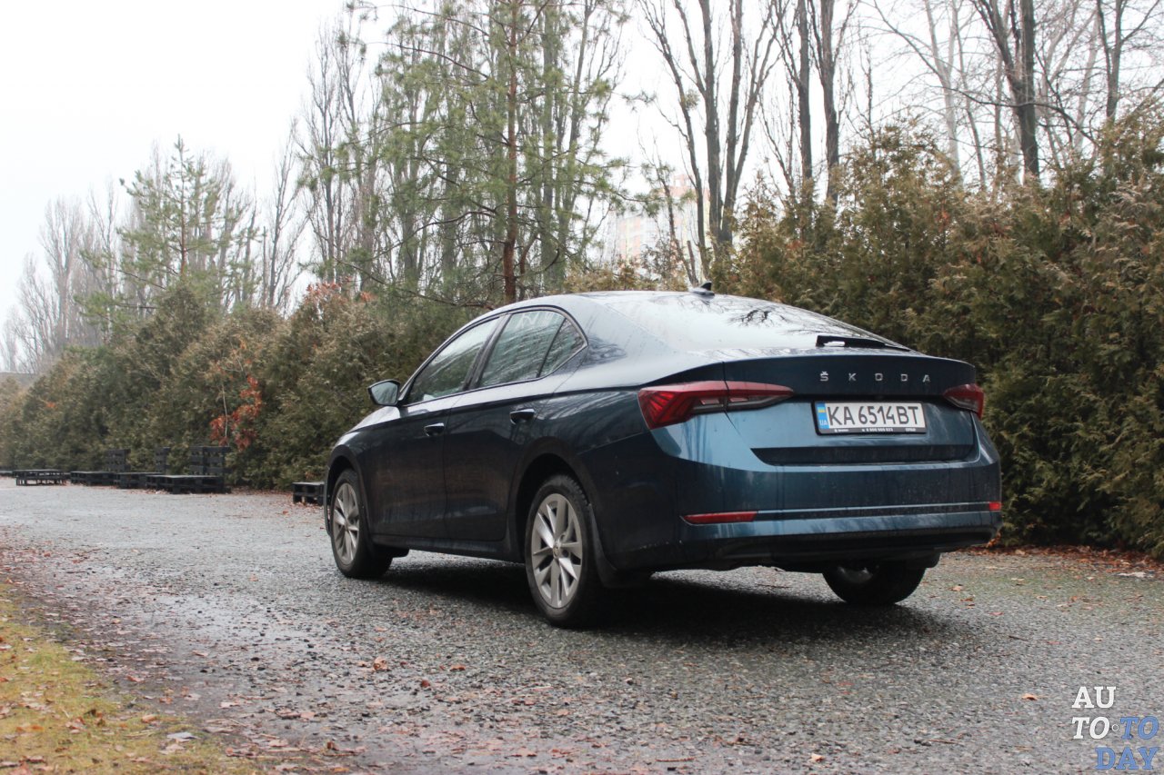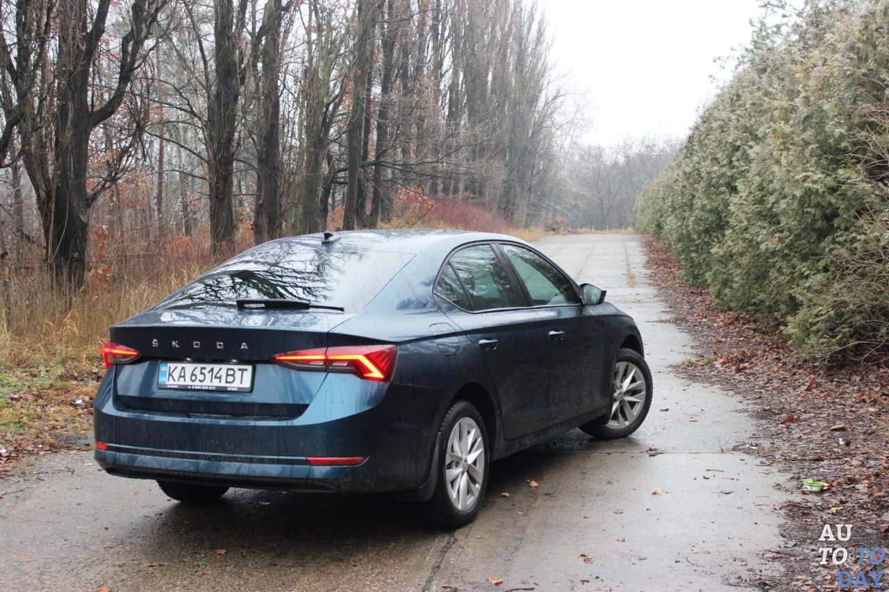 Чешский автопроизводитель так старательно работал над дизайном и экологичностью новой модели, что сократил коэффициент аэродинамического сопротивления с 0,29 до 0,24 – эти цифры одни из лучших в классе. Профиль автомобиля стал более динамичным благодаря встроенному в крышку багажника спойлеру-хвостику, а также знакомой по другим моделям концерна изгибающейся линии, соединяющей переднюю и заднюю оптику. Интересно, что из 13 доступных тонов серых и черных в сумме только четыре, тогда как синих и красных вместе шесть. И тут «нескучность» налицо. Тестовый автомобиль окрашен в металлик TITAN BLUE.
