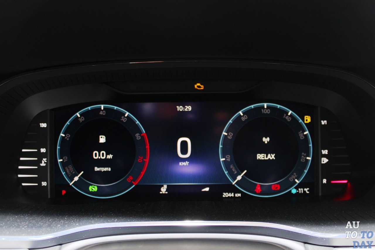 Второй разрыв шаблонов – это двухспицевое рулевое колесо с небольшим количеством кнопок и многофункциональными колесиками – все работает четко и интуитивно понятно. На фоне этого уже не так удивляешься 10-дюймовому электронному щитку приборов. Такой мы уже встречали на Skoda Kodiaq. Но для Octavia это тоже в новинку. «Автомат» получил скромный джойстик вместо большого рычага. В сочетании с «электроручником» (штатное оснащение даже для базовой комплектации) это придает сильно больше свободного пространства в передней части автомобиля.