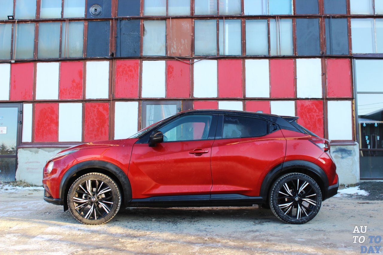 Кроссовер второго поколения построили на модульной платформе CMF-B. Конструктивно она во многом схожа с машиной первой генерации – на передней оси работают стойки McPherson, сзади прописалась полузависимая подвеска. Длина Nissan Juke в сравнении с предшественником увеличилась с 4135 до 4210 мм, ширина — с 1765 до 1800 мм, а высота — с 1565 до 1595 мм. Одновременно с этим благодаря широкому применению современных материалов (преимущественно высокопрочных сталей) вес машины снизился на несколько десятков килограмм.