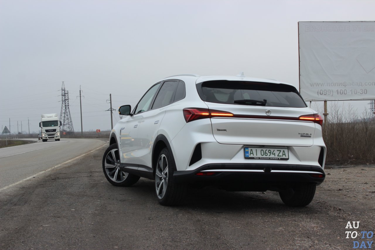 Завершують образ величезні 20-дюймові колеса і доволі благородний колір кузова, який можна зустріти лише на окремих преміальних моделях корейських брендів – справжня екзотика на наших вулицях. Справді, дизайнери британського бренду з китайськими інвестиціями про зовнішній дизайн попіклувалися добряче.