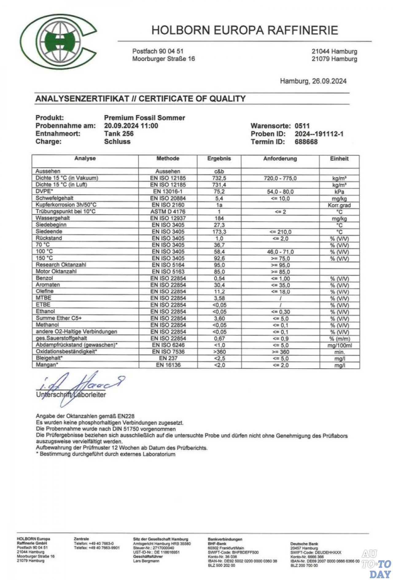 У мережі АЗС «БРСМ-Нафта» НафтоРинку повідомили, що клієнти високо оцінили якість німецьких бензинів, компанія веде перемовини про довгострокові контракти на постачання А-95 з Гамбургу. НПЗ Holborn Europa Raffinerie розташований в Німеччині, він є частиною групи Oilinvest (Нідерланди) B.V.