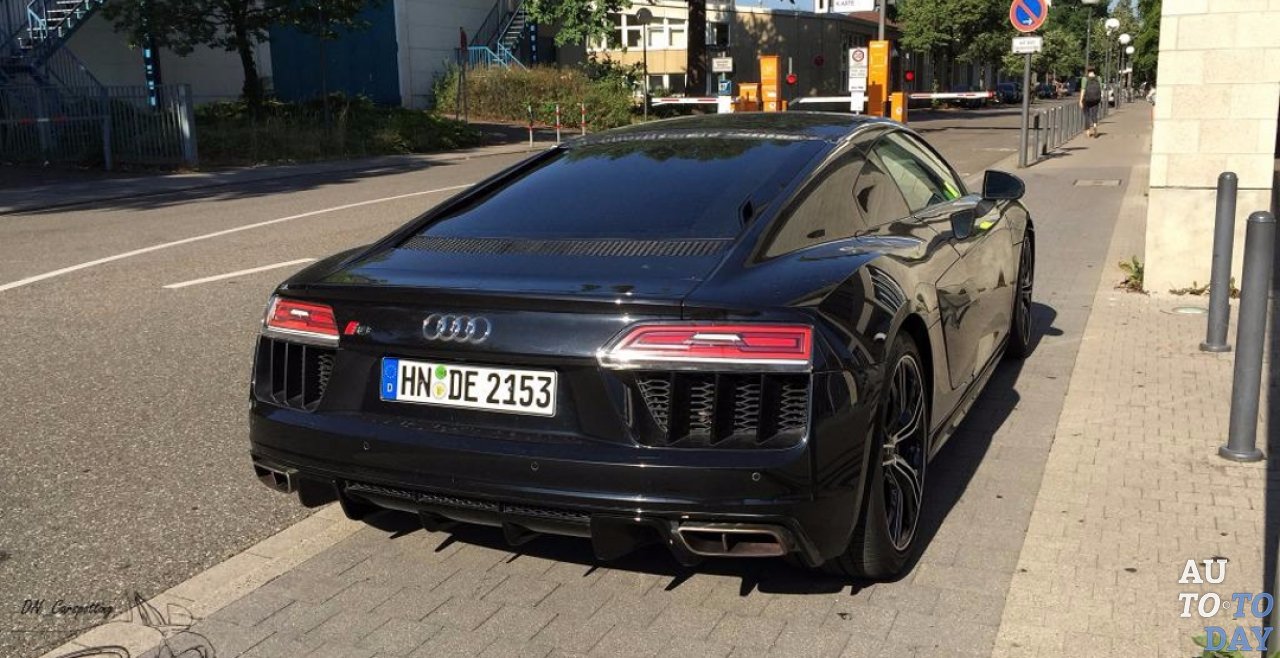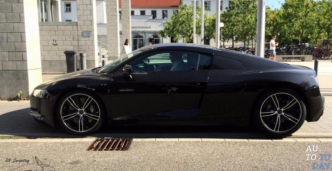 Новый спорткар второго поколения Audi R8 V10 был замечен в городе Карлсруэ, Германия. Помимо кузова, окрашенного в черный металлик, этот автомобиль получил 19-дюймовые пятилучевые колесные диски с двойными спицами и глянцевой черной отделкой стоимостью 1000 евро. Также заметны серые тормозные суппорты и светодиодные фары, которые стали стандартными на новом R8.