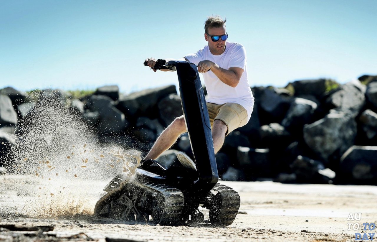 Это самокат на гусеничном ходу, который движдется с помощью 200-кубового бензинового двигателя мощностью 14 л. с. Длина: 76 см, вес: 38 кг. Скорость достигает 48 км/ч.Этот экземпляр способен взобраться на 40 градусные подьемы и делает впечатляющие выкрутасы.