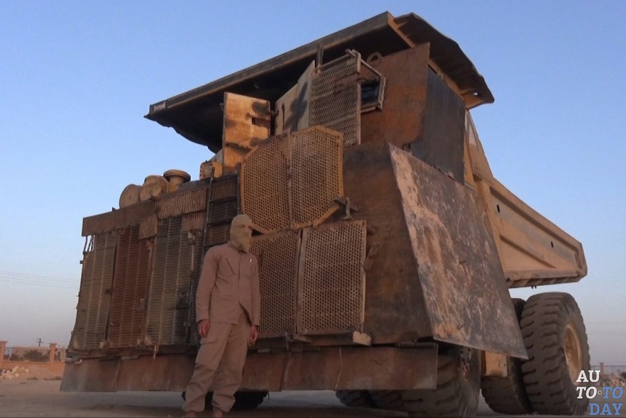 Еще недавно, до того как этот БелАЗ попал в руки боевиков в Сирии, это был обычный карьерный самосвал, сообщает "Автопортал". Для участия в штурме местного аэродрома боевики «надели» на него броню и тем самым продолжили традицию, которая имеет место и на востоке нашей страны.