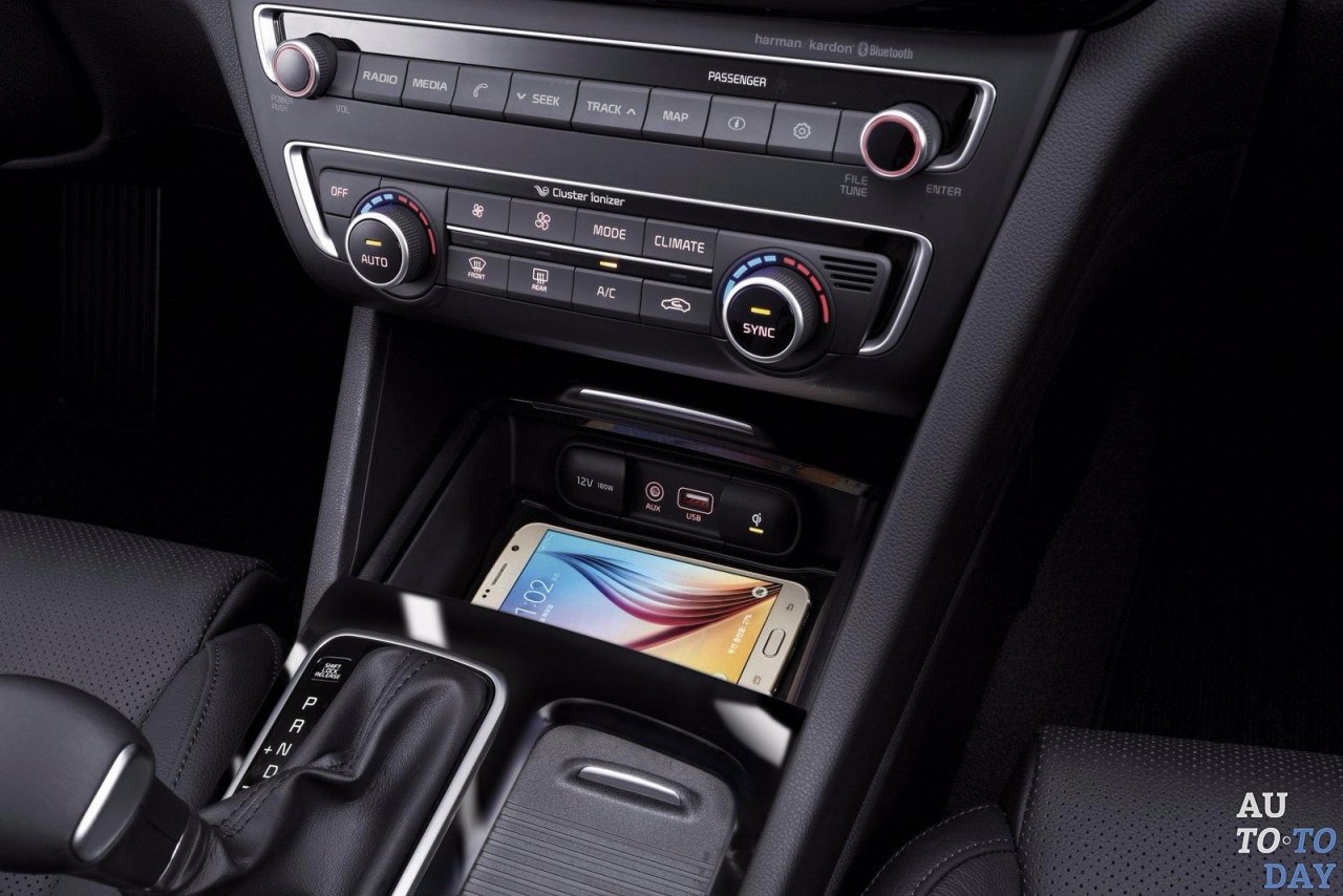 Интерьер сделан с большим вниманием к деталям. Акцент сделали на шумоизоляции. Уровень шумов в салоне значительно снизится. К сожалению, внутри всё ещё применяются жесткие пластики, и они никак не сочетаются с имиджем этой машины. Kia заверила, что стоит ждать обновление информационно-развлекательной системы, которая будет снабжена 7- или же 8-дюймовым сенсорным дисплеем. Среди прочих удобств - в кокпите появится беспроводная зарядка для телефона, а также акустическая система Harman Kardon с 10 динамиками.