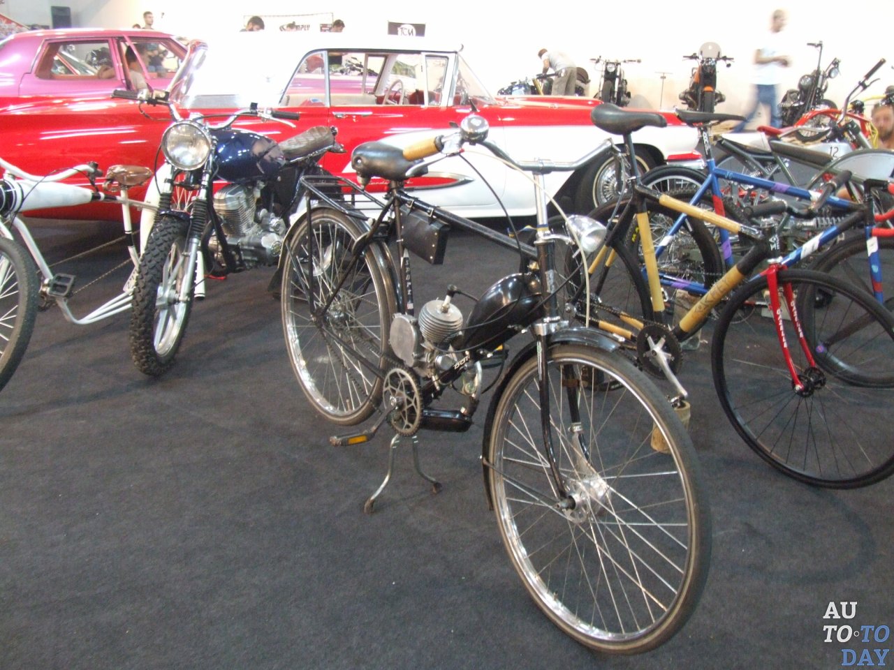 озиции на улице разместились советские экземпляры, среди которых преобладали «Жигули», но было и по одному ЗАЗику и «Москвичу». Поклонники велодвижения могли созерцать классические «бисиклеты», кастомные образцы, модели с бензиновыми и электрическими моторчиками.
