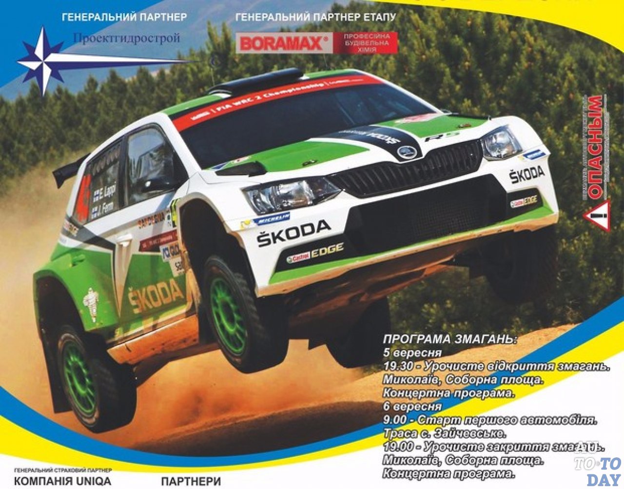 Как полагается, 5 сентября, на Соборной площади города Николаев , в 19:30 организаторы проведут яркую церемонию открытия с концертом и сладкими сюрпризами от ТМ "3 медведя". Первый боевой автомобиль стартует 6 сентября в 9:00. Также сообщается, что вечером, в 19:30, на Соборной площади состоится церемония вручения призов победителям и призерам третьего этапа Чемпионата Украины по мини-ралли "Кубок Лиманов" и ралли "ЗА МИР".
