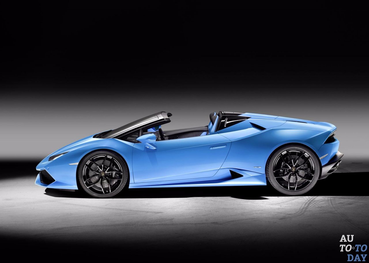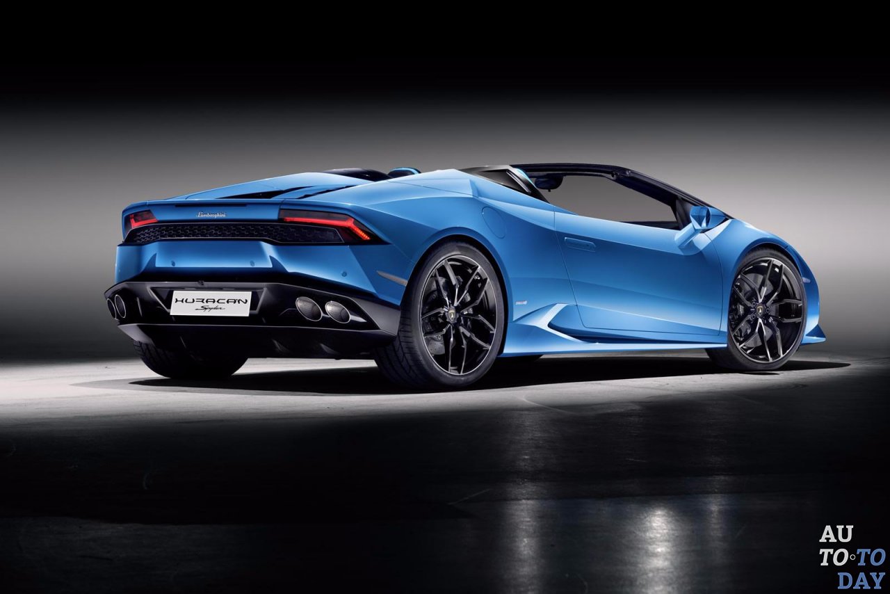 После анонса модели на прошлой неделе, Lamborghini официально представил Huracan Spyder перед началом Франкфуртского автосалона. Как и ожидалось, автомобиль переносит большую часть дизайна купе, но сторонится металлической крыши в пользу недавно разработанного электрогидравлического мягкого верха, который открывается и закрывается за 17 секунд на скорости до 50 км/ч. Покупатели должны будут выбрать из черного, коричневого и красного оттенка для ткани крыши. Lamborghini также добавил два съемных боковых ограждения от ветра для повышения комфорта при движении с опущенным тентом.