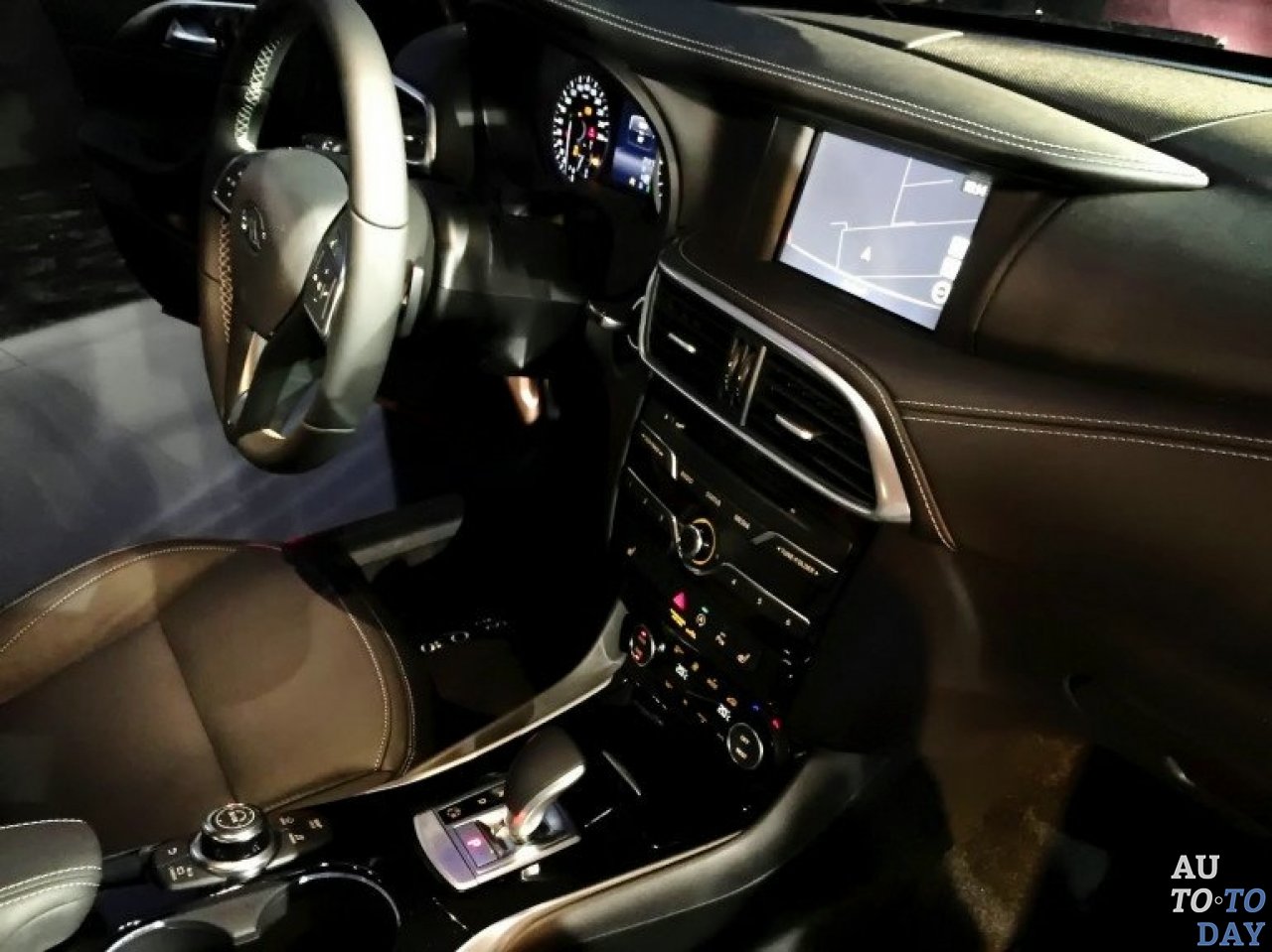 Интерьер выполнен в духе Mercedes: сиденья регулируются при нажатии клавиш в виде контуров человечка, блок управления климат-контролем, а также приборная панель выдают немецкую породу. При этом селектор автоматической коробки передач находится не под рулем, а на отведенном для него месте на центральном тоннеле, в верхней части центральной консоли другие воздуховоды и дисплей мультимедиа.