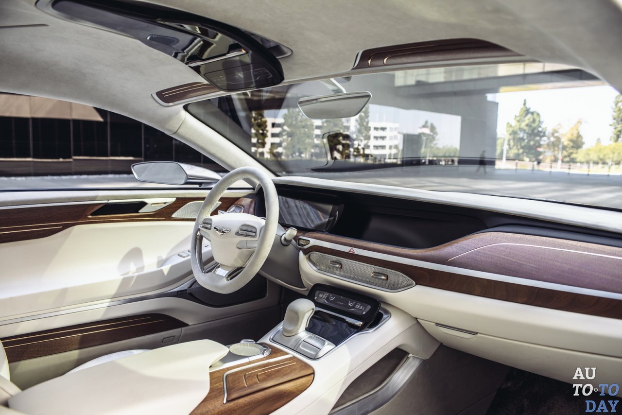 В салоне прописался крупный цифровой дисплей, на который вынесено управление многими функциями автомобиля. Корейский инженеры уверяют, что вскоре на машине появятся автопилот и другие системы безопасности из будущего, которые мы увидим на автомобилях Hyundai в следующем десятилетии.
