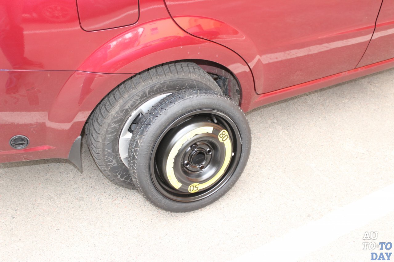 Отрадно, что ваш покорный слуга с ростом 183 см без проблем уместился в кресле водителя, при этом на галерке ему также хватило места. Сложить спинки второго ряда в пропорции 60/40 можно только из салона. Большой и вместительный багажник (400 литров в походном положении) имеет правильную, почти прямоугольную форму, которая позволяет удобно размещать не только относительно бесформенные сумки, но и вполне громоздкие ящики. Так как под полом спрятался тороидальный баллон для газа, то запаску заменили ультрамаленькой «докаткой».
