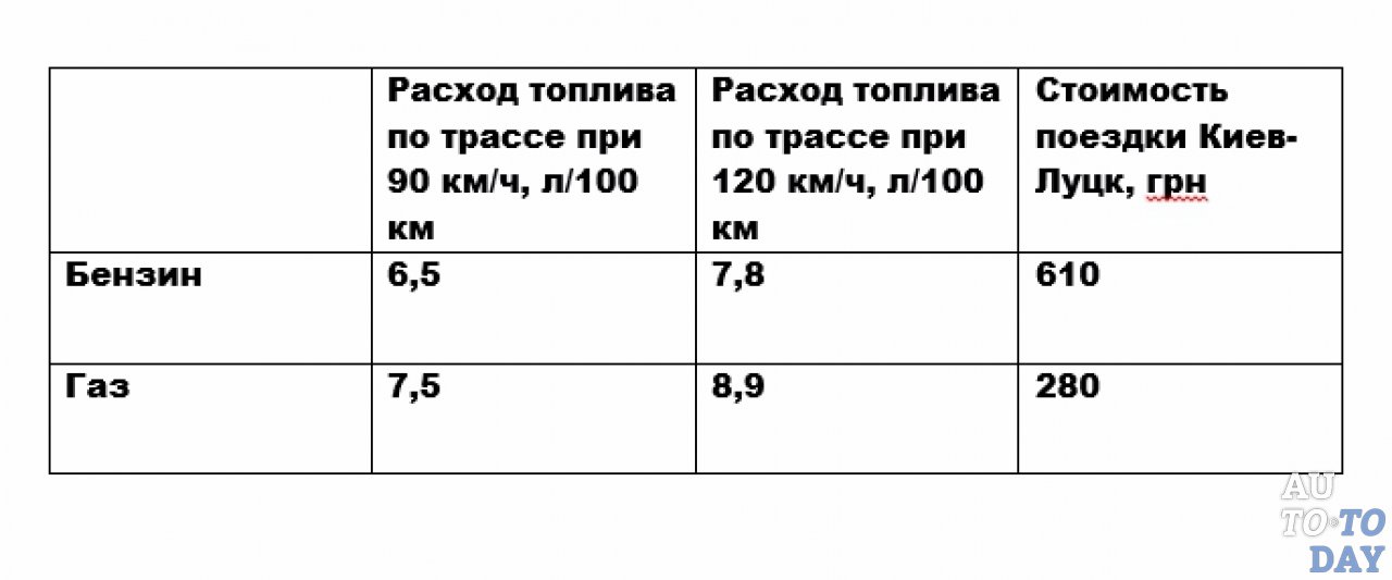 Надо отметить, что наша машина еще не прошла обкатку, да и при езде по дорогам регионального значения с меньшей скоростью топливная экономичность будет еще интереснее. Езда на бензине позволит вам сэкономить от 0,8 до 1 литра на «сотню», в зависимости от режима (трасса/город), но цена на топливо отличается более, чем на 60%!