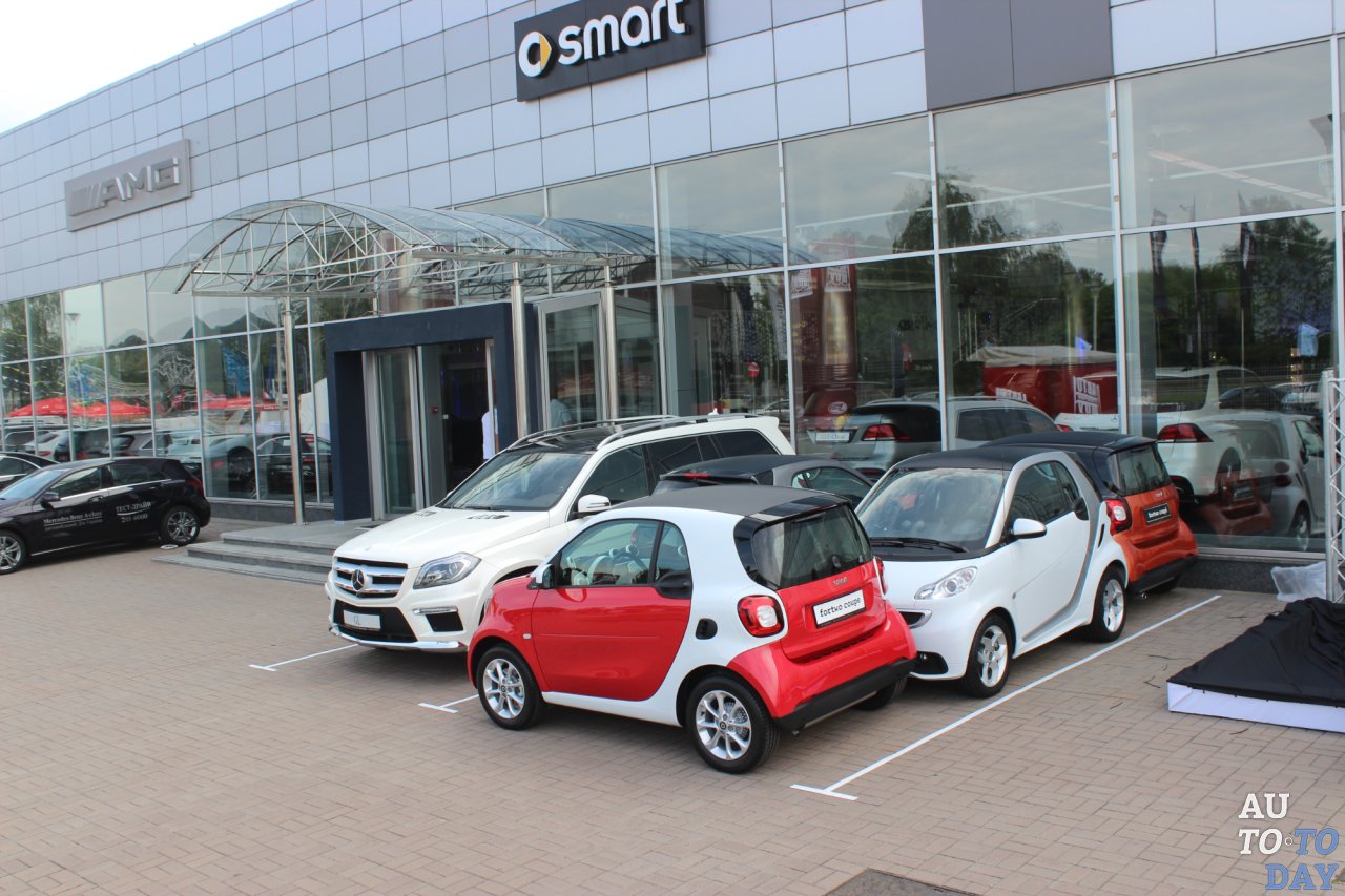Mercedes представил широкую линейку моделей – от реплики первого Benz PatentWagen до свежих E-Class и GLS. Отдельное место занял не самый новый, но от того не менее уникальный суперкар Mercedes-Benz SLR McLaren. Новые «Смарты» продемонстрировали преимущество своей компактности, разместившись вчетвером на одном парковочном месте.