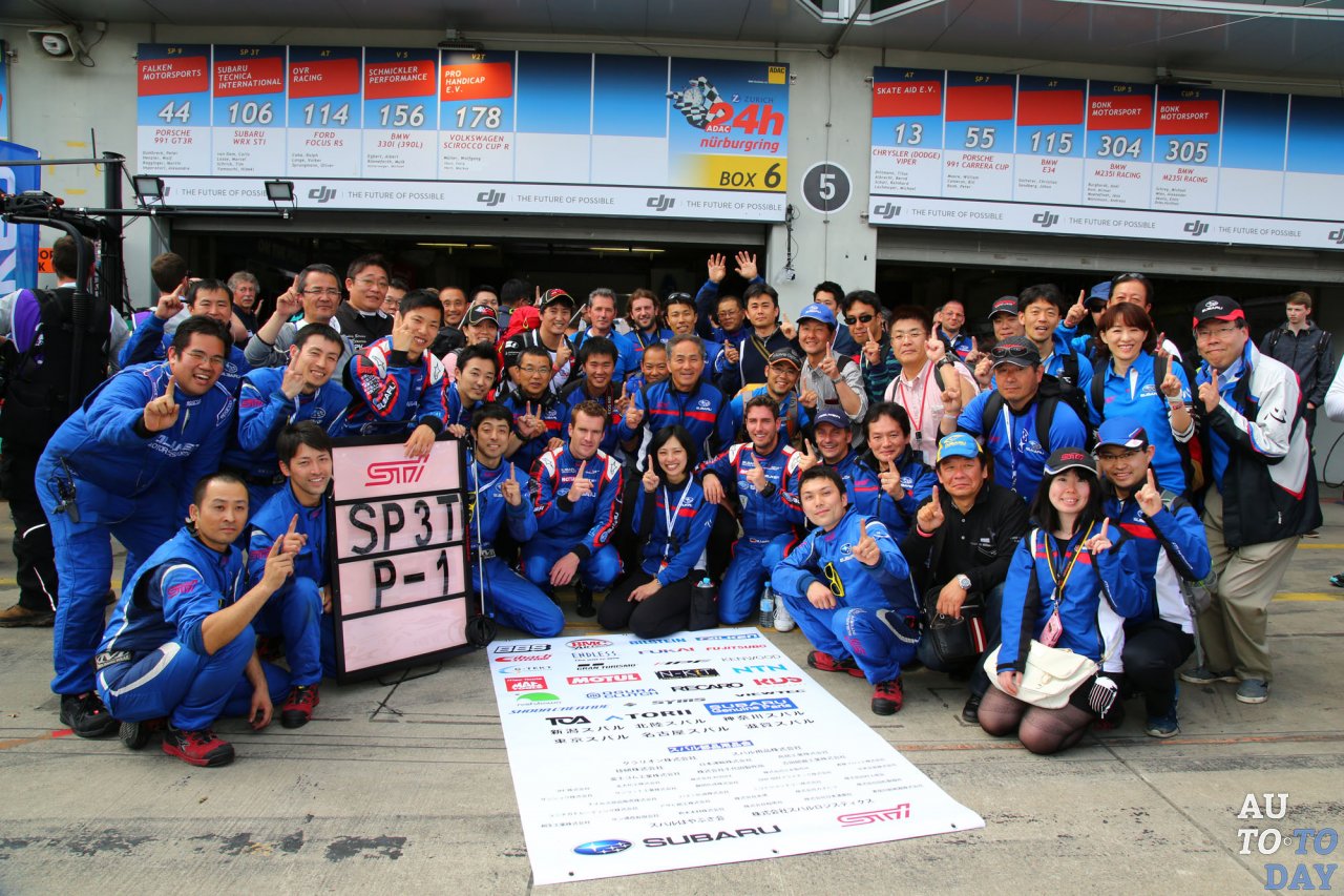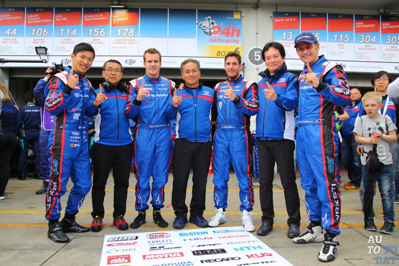 К победе команду Subaru привели пилоты Хидеки Ямаучи (Япония), Марсель Лассе (Германия) и Карло ван Дам (Нидерланды) и Тим Шрик (Германия) и менеджер Хидехару Тацуми. Для компании эта победа на Нюрбургринге стала уже четвертой по счету за девять лет участия и второй подряд после прошлогоднего успеха.