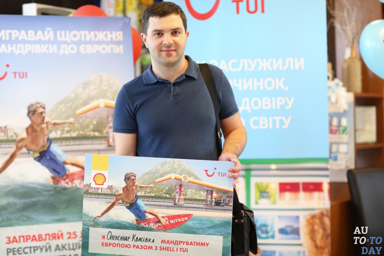 Первый победитель в акции – Александр Квасивка из Киева, который в результате случайного компьютерного выбора стал счастливым обладателем сертификата на путешествие на двоих в одну из стран Европы. Александр признался, что впервые в жизни выиграл большой приз: «Я стал постоянным клиентом сети АЗС Shell год назад, как только приобрел автомобиль. Об акции узнал случайно, когда, как обычно, заправил автомобиль лучшим топливом – V Power Nitro +. Я очень удивился и даже не поверил, когда мне позвонили и сообщили, что я выиграл такой приз, поскольку всегда скептически относился к любым розыгрышам. А теперь собираемся с женой в путешествие и очень благодарны Shell и TUI Ukraine за такую возможность».