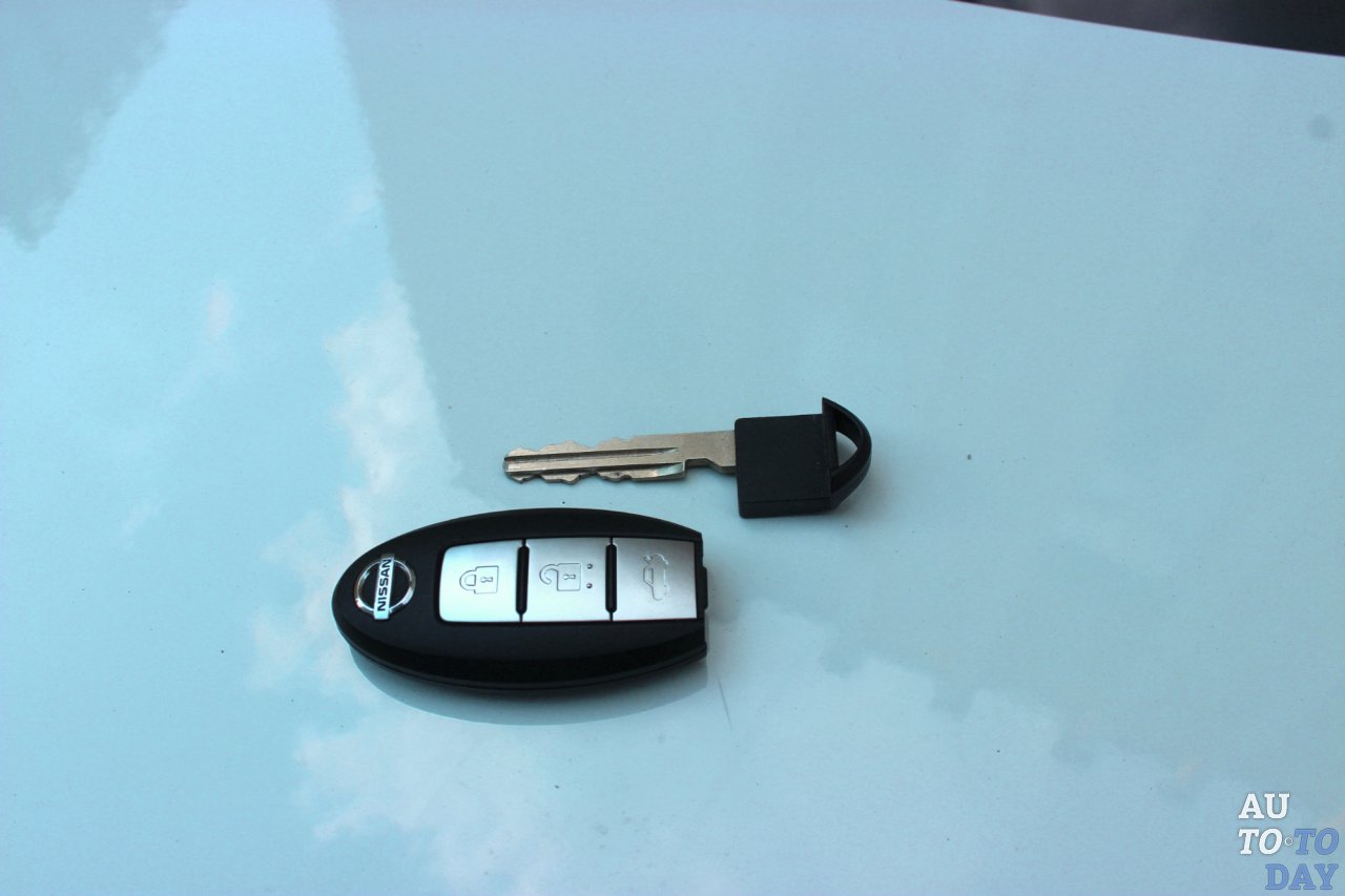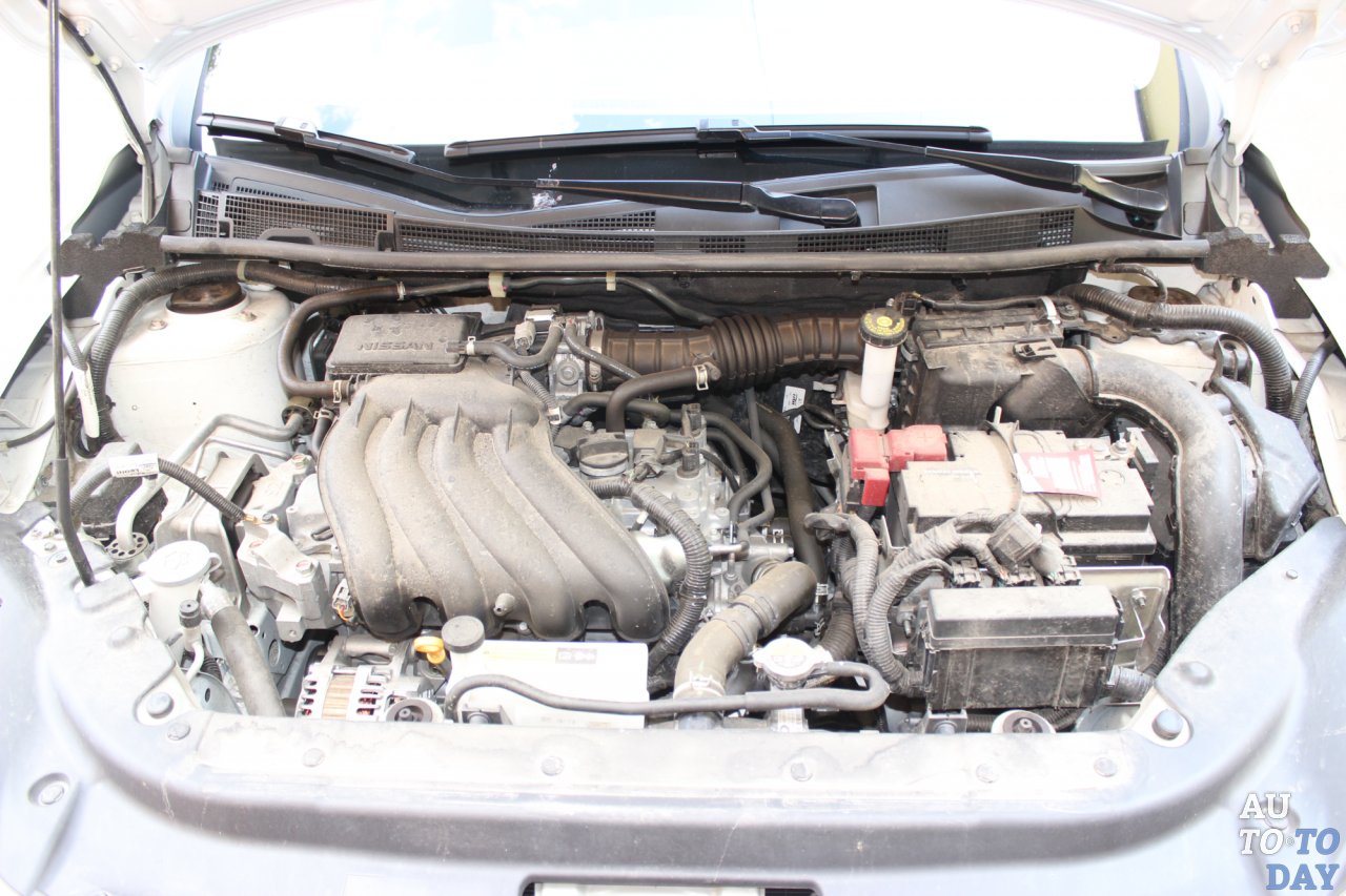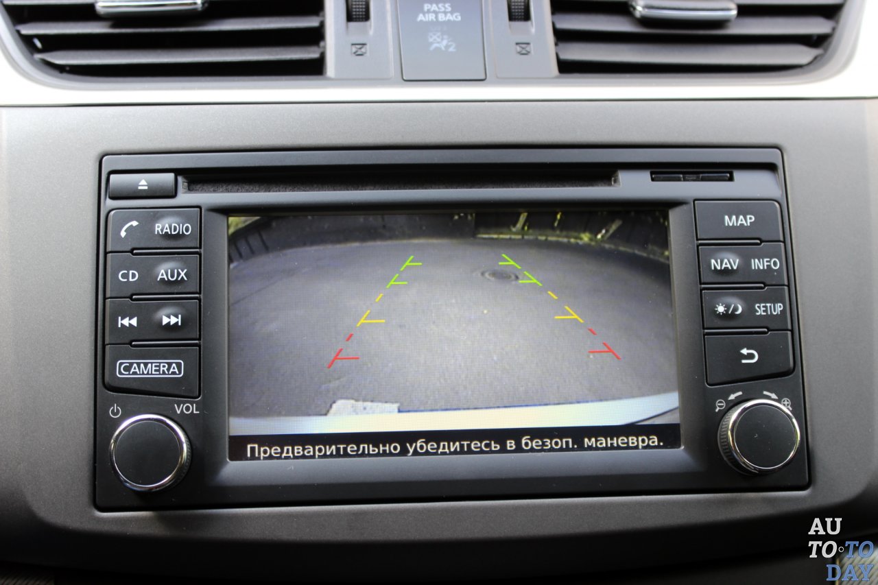 Наш снежно-белый Nissan Sentra оснащен 1,6-литровым бензиновым двигателем мощностью 117 л. с. и максимальным крутящим моментом в 158 Нм. Трансмиссия, которая ему полагается – бесступенчатый вариатор. Заводится машина с помощью малиновой кнопки, расположенной справа от руля и по-современному окрещенной i-Key. Чтобы кнопка сработала, предварительно нужно нажать педаль тормоза.