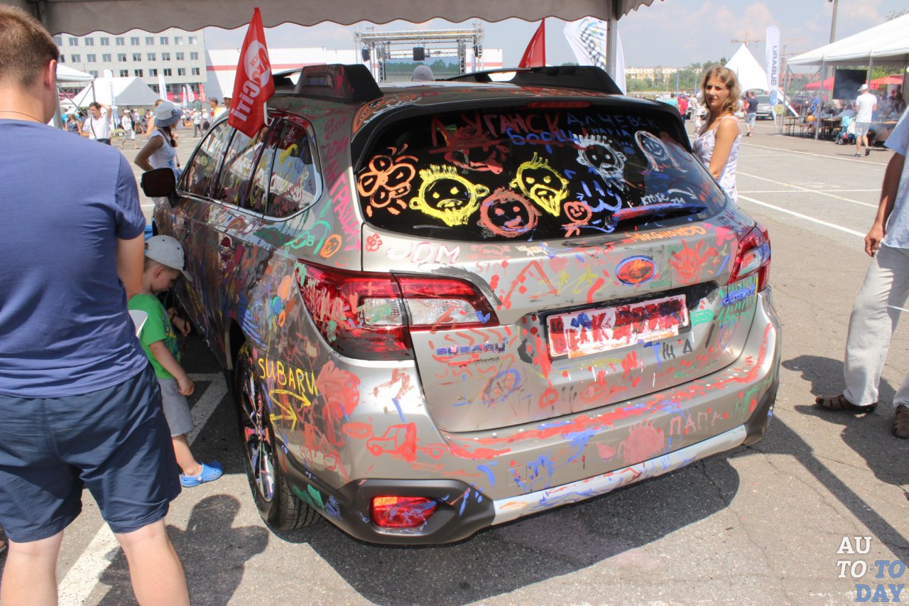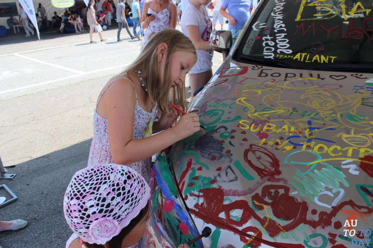 Но кульминацией детского праздника стала возможность разукрасить вполне себе настоящий Subaru Outback.