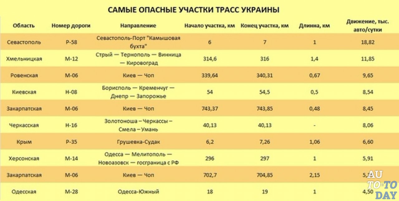 Средняя интенсивность перемещения в небезопасных местах украинских дорог составляет 9,3 тысяч автомобилей в день.