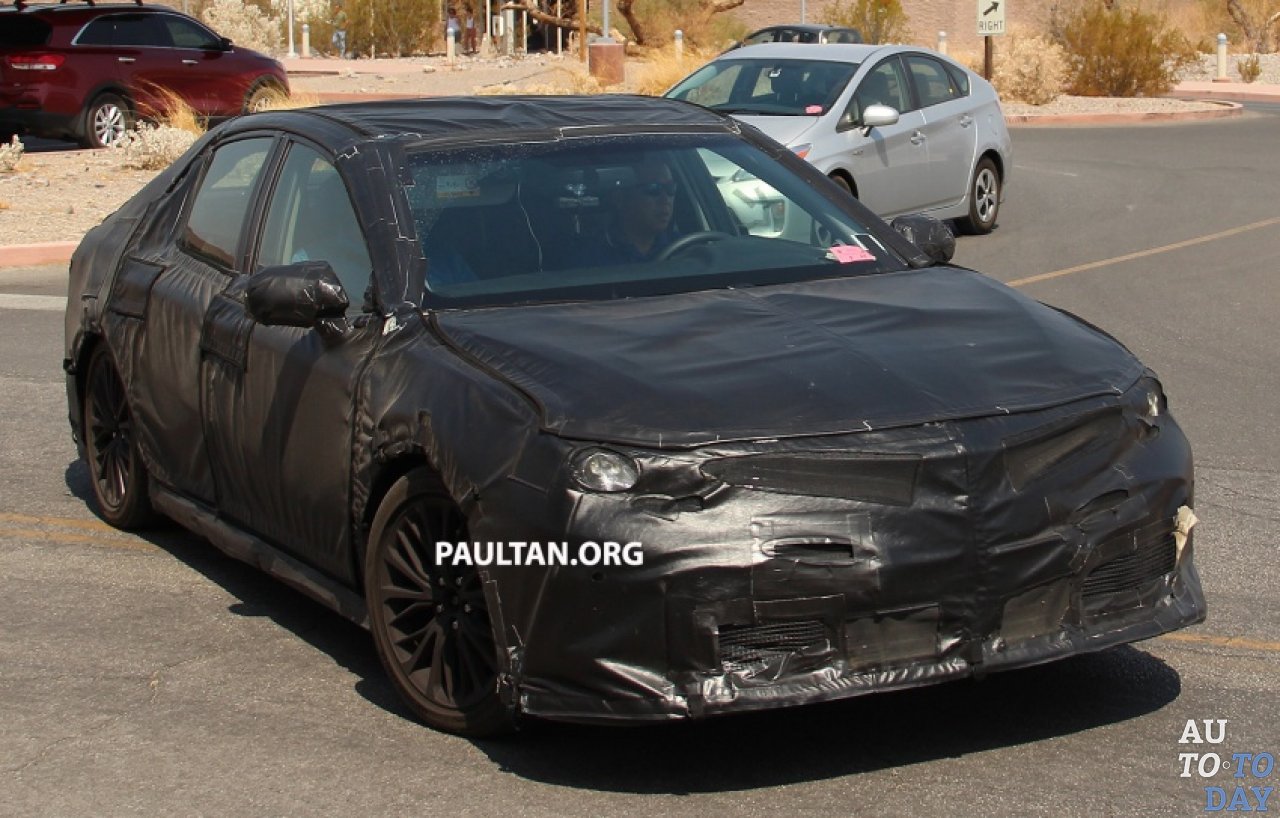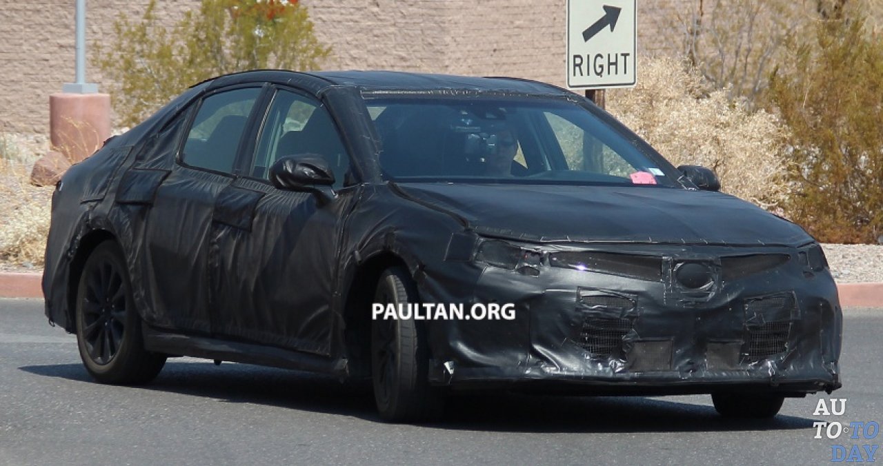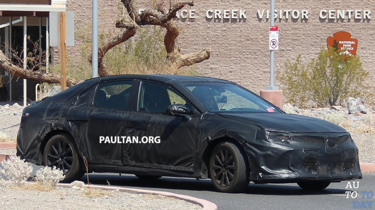 Toyota Camry был сфотографирован во время тестирования в межгорной впадине «Долина Смерти», США. Явно среднего размера автомобиль был словлен в самой глубокой, сухой и жаркой зоне Северной Америки, но очень плотно покрыт черной маскировкой. Нет ничего радикального из того, что мы можем увидеть на этих снимках.