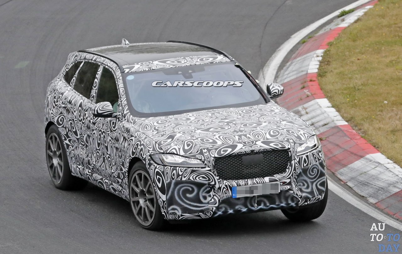 Шпионы заметили прототип F-Pace SVR/R, чей камуфляж пытается скрыть более агрессивный передний бампер. Хотя Jaguar использовал нормальный вид выхлопных труб, чтобы убить интерес любопытных фотографов, все же не смогли скрыть сумму злых звуков, производящимися эти автомобилем.