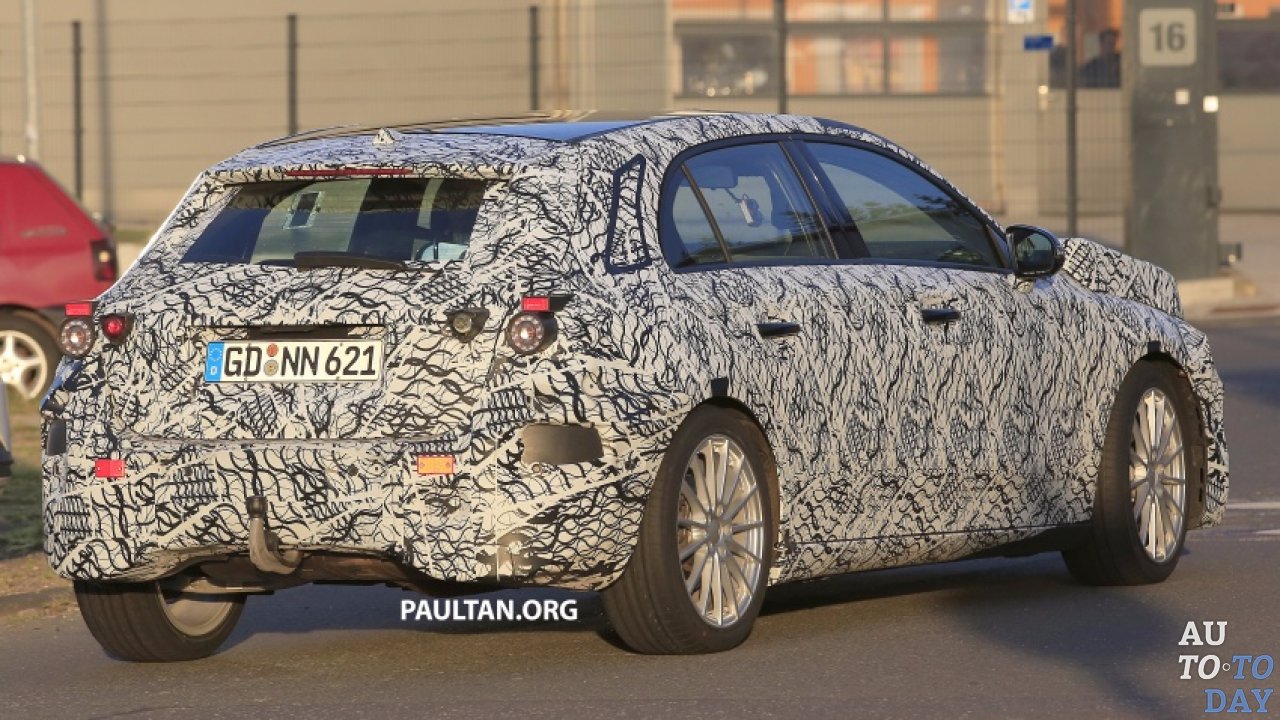 Из-за большого количества камуфляжа на машине, почти не видно как же будет выглядеть автомобиль. Тем не менее, можно сделать вывод о том, что он сохранит нынешние пропорции W176 с длинным капотом и низким кузовом - хотя он выглядит немного длиннее. Также на тестовой модели все же видны боковые зеркала, которые были перемещены из передней стойки на двери, так же, как на новых купе Mercedes C- и S-Class. Автопроизводитель сохранил отличительную выштамповку, которая проходит через двери, в то время как в задней части появилась более широкая задняя дверь, разделяющая задние фары на две части с каждой стороны (а-ля GLA).