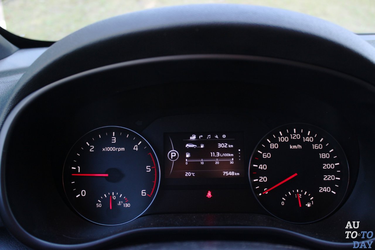 Информационно-развлекательная система запомнилась хорошей и понятной прорисовкой меню, толково думающей навигационной системой. Маленький сюрприз – отказ компьютера в моем желании подключить смартфон к машине на светофоре. Для этого нужно полностью остановиться, все в угоду безопасности. (Наглеет понемногу эта электроника! Еще немного, и машина запретит нам есть за рулем!) Несмотря на отличную отзывчивость сенсорного монитора и клавиш под ним, почти все функции продублированы кнопками на руле. Кстати, рулевое колесо в нашей комплектации особенное, со срезанным нижним сектором, обтянутое перфорированной кожей и приятно пухлое, к тому же еще и с подогревом. За ним уместился не сильно большой, но от того не менее хорошо читаемый щиток приборов с цветным 3,8-дюймовым дисплеем борткомпьютера по центру (кроме стандартных показателей, он всегда выводит максимально допустимую скорость на данном участке дороги). За качественный звук отвечает аудиосистема JBL.