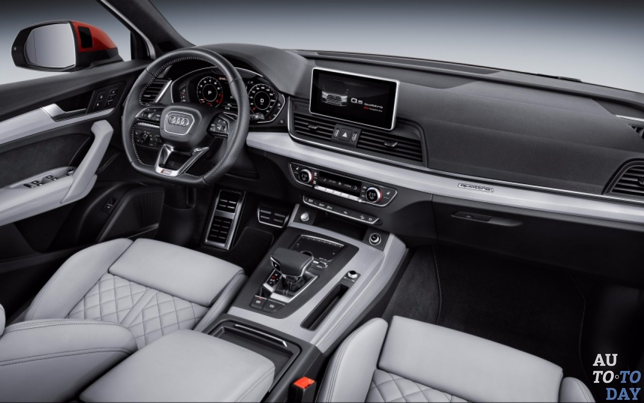 Внутри, горизонтальная конструкция приборной панели Q5 используется совместно с A4, A5 и Q7, хотя модель не получила широкую конструкцию вентиляционного отверстия. Также есть различные варианты дисплеев, которые включают 12.3-дюймовый виртуальный дисплей кабины Audi, MMI навигацию с 8,3-дюймовым экраном и сенсорным экраном MMI (большой тачпад с тактильной обратной связью на моделях с автоматической коробкой передач) и дисплей на лобовом стекле. Как и Q7 и A4, Q5 имеет функцию личноо маршрута в системе навигации, которая может узнать предпочтительный маршрут водителя и предлагать оптимизированное планирование маршрута.