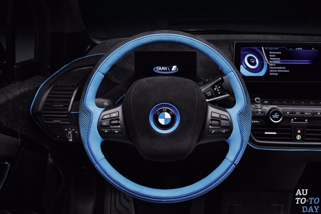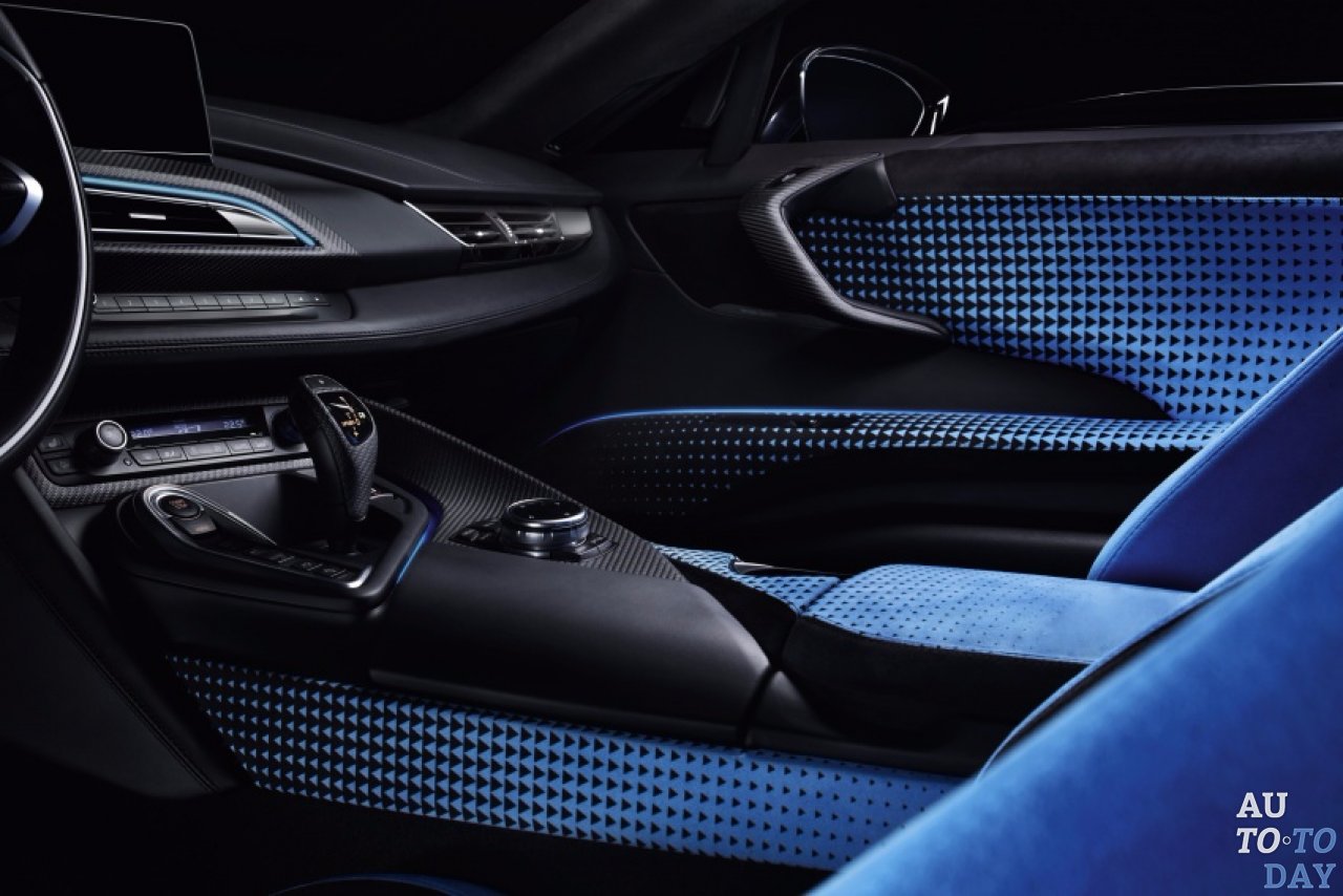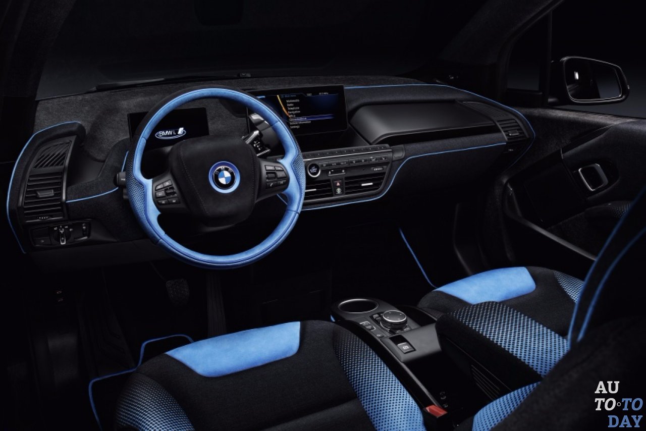 Что касается i3, эффект происходит по вертикали, а не по горизонтали, как на i8, с Protonic Blue, покрывающий нижнюю часть кузова автомобиля, переходящий в черный сверху. Точно то же самое происходит и с интерьером. Для получения цветного перехода используются те же материалы, что и в вышеупомянутой модели.