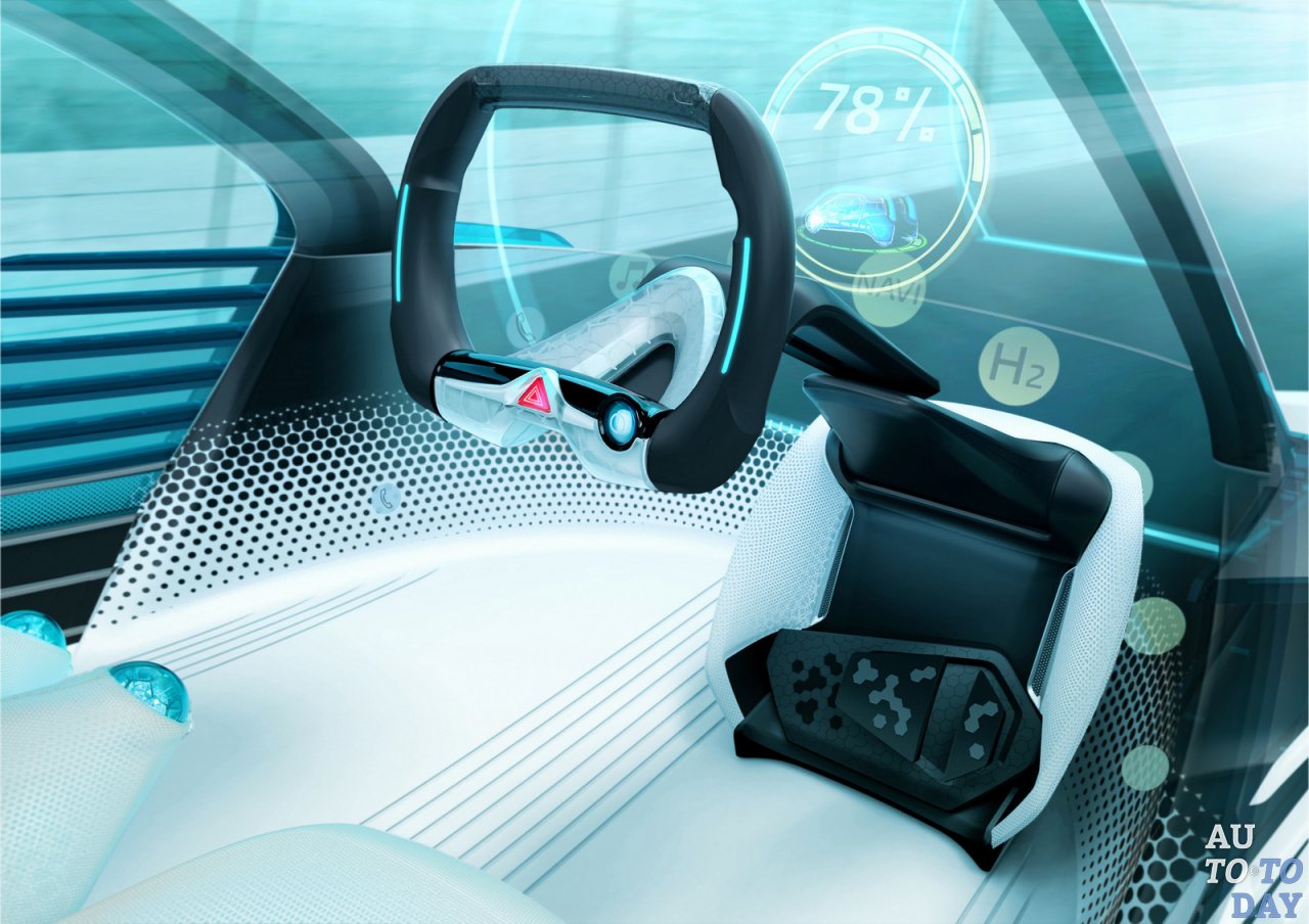 Первое, что заметно - это стиль кузова, вдохновленный мультфильмом Jetsons, но в отличие от летающих автомобилей из популярного мультфильма, эта модель построена с небольшими колесами, и является почти бесшумной благодаря топливным элементам, использованным в трансмиссии и четырем независимым двигателям.