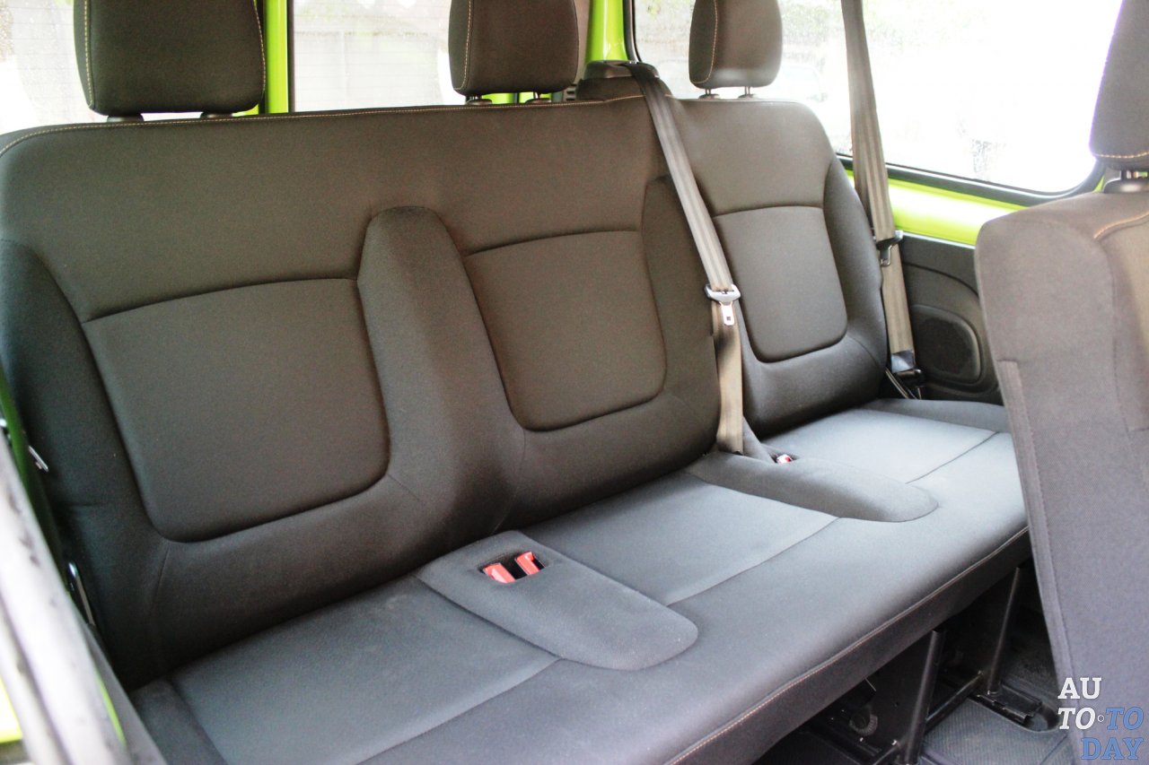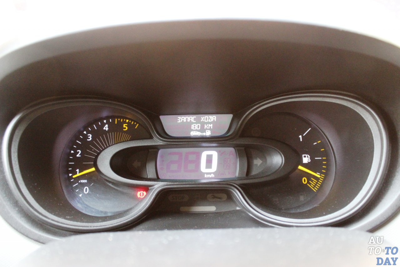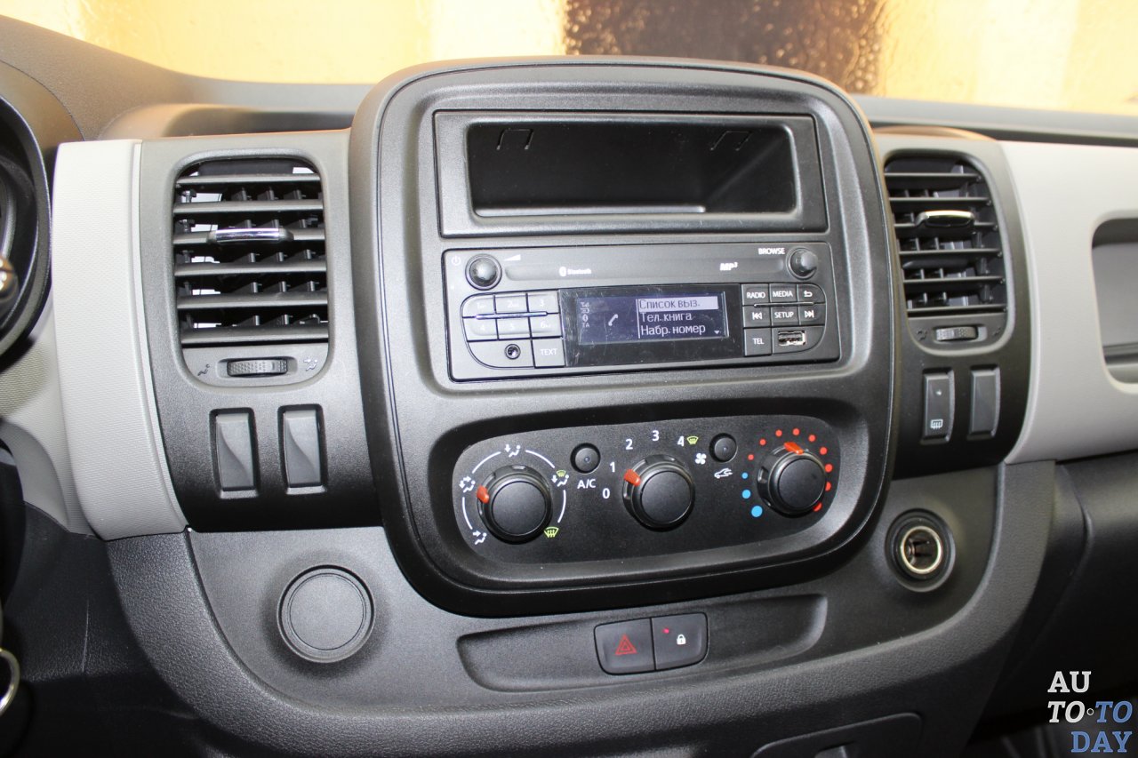 Рулевое колесо по форме напоминает другие модели компании; толщина его обода, к слову, могла бы быть и потолще. Щиток приборов с электронным спидометром, уже знакомый по компактному кроссоверу Renault Captur, смотрится на «Трафике» органично. Почти все кнопки сконцентрированы на центральной консоли (что оказалось очень удобно), остальное же пространство торпедо отдано под различные отсеки. Слева от руля есть закрывающийся кармашек, сверху два вместительных отделения для документов и мелочи, где есть даже USB-порт (можно подключить плеер или навигацию!), справа от рычага КПП выдвижной подстаканник, дальше – огромный бардачок у ног пассажира и небольшой отдел, где за доплату могут расположить фронтальная подушка безопасности сидящего справа.