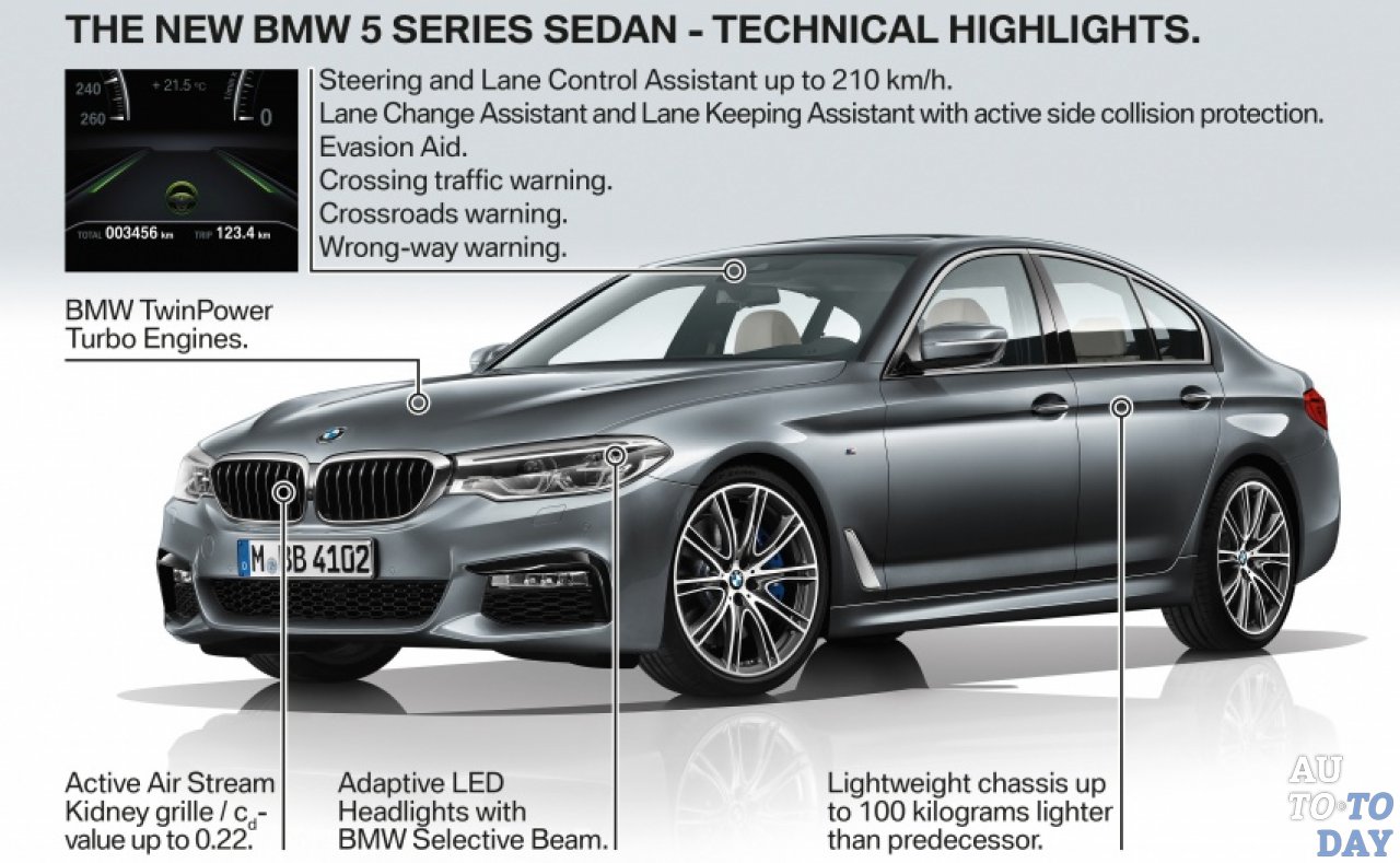 Новый BMW 5 Series, первые официальные фотографии которого были опубликованы вчера, наконец, был представлен. G30 седьмого поколения, который дебютирует на мировом рынке 11 февраля в следующем году, выглядит более менее подобным спортивной версии текущего 7 Series, так что это хорошая новость для тех, кто ищет более компактную альтернативу последней.