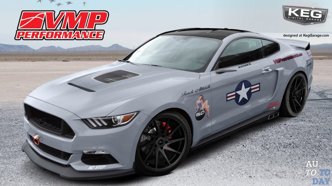 Первым является Mustang шестого поколения, модернизированный специально для выставки студией VMP Performance. Сделан на основании фастбэка Mustang GT, он был оснащен 2,3-литровым TVS нагнетателем, который благодаря ряду дополнительных обновлений, увеличивает мощность до 851 л.с. и 950 Нм крутящего момента.